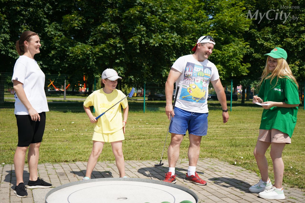 Соревнования по мини-гольфу среди молодых семей прошли в Могилеве — эстафета «Битва дворов» собрала в День молодежи и студенчества 15 молодых семей областного центра. Победу по итогам соревнований одержала семья Линкевич.