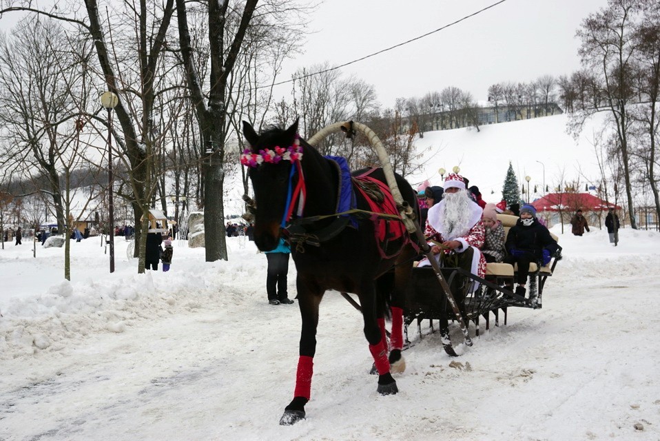 Дед Мороз со своей внучкой Снегурочкой в автомобильном кортеже других волшебников прибыли в парк в Подниколье. Здесь состоялось торжественное открытие очередной резиденции сказочного Дедушки.