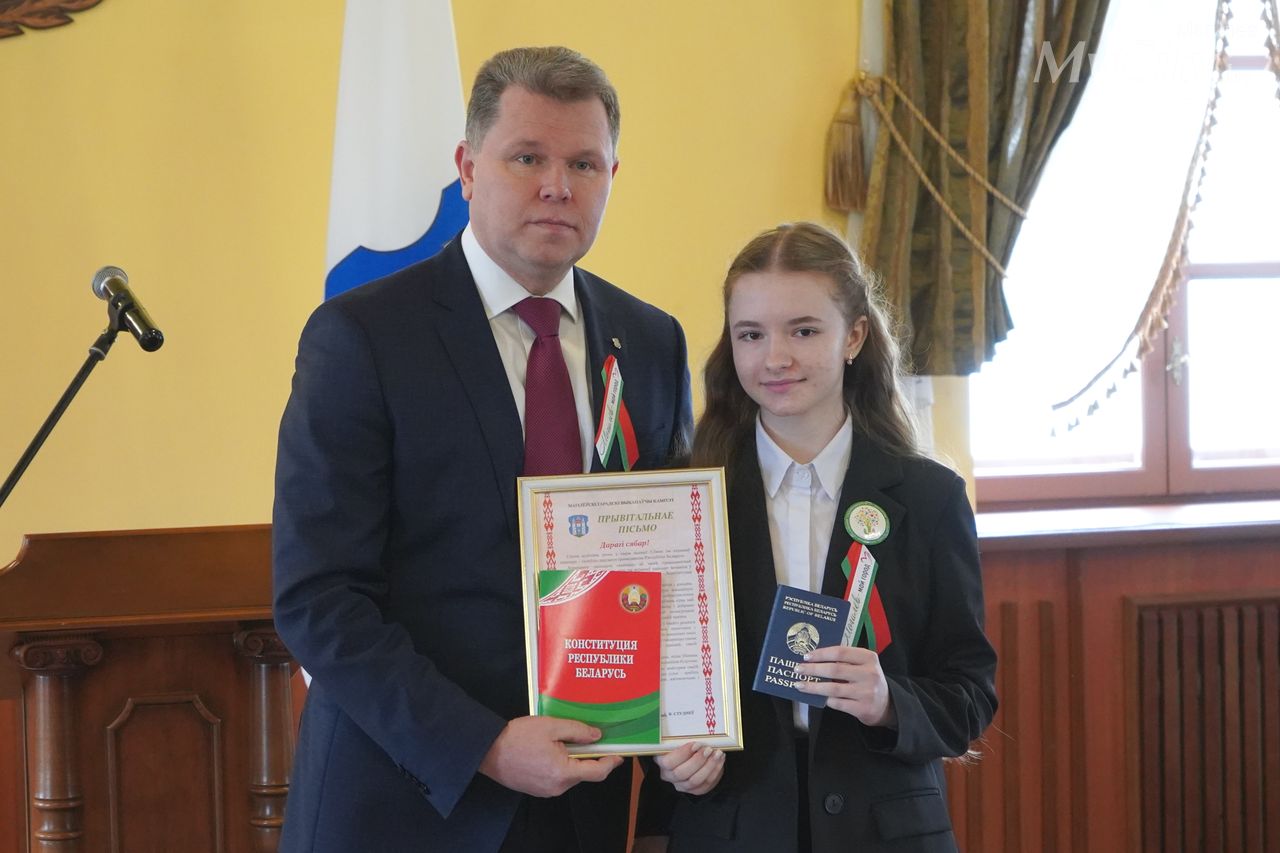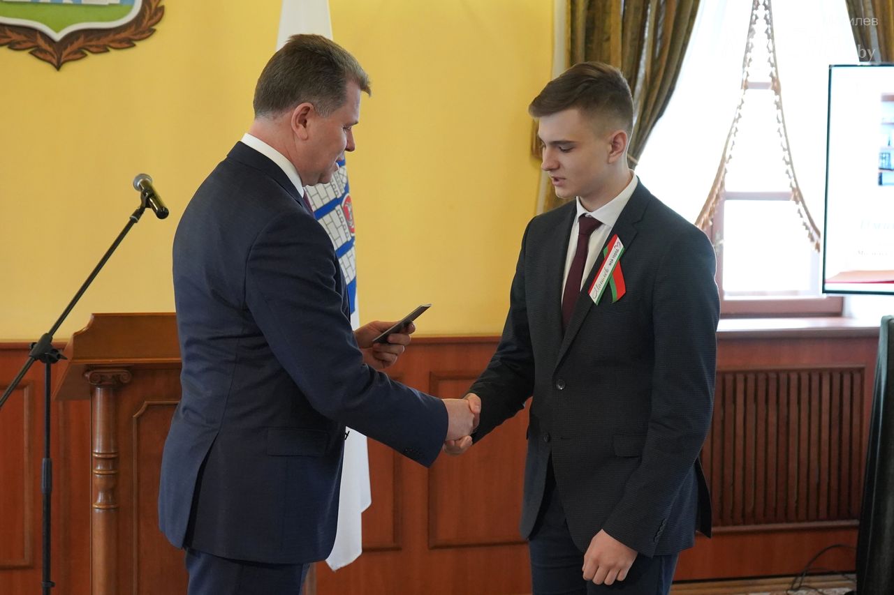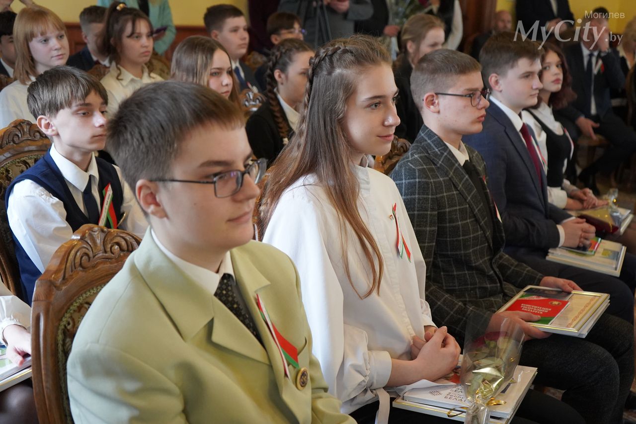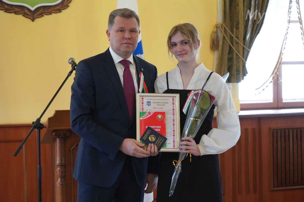 Юные могилевчане — отличники учебы, победители и призеры различных соревнований, предметных олимпиад и творческих конкурсов — получили важный в жизни каждого белоруса документ, паспорт гражданина Республики Беларусь, из рук председателя Могилевского горисполкома Александра Студнева.