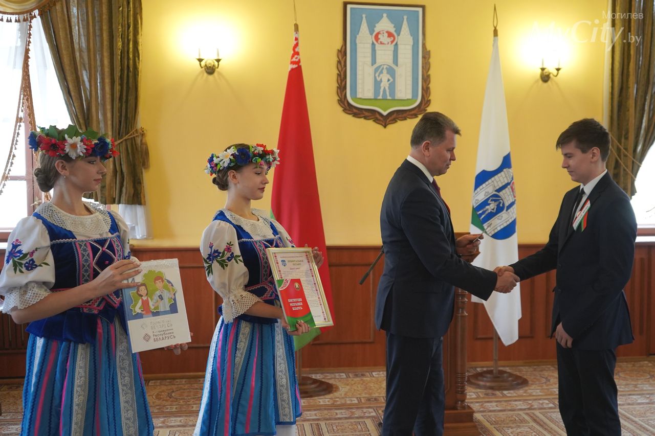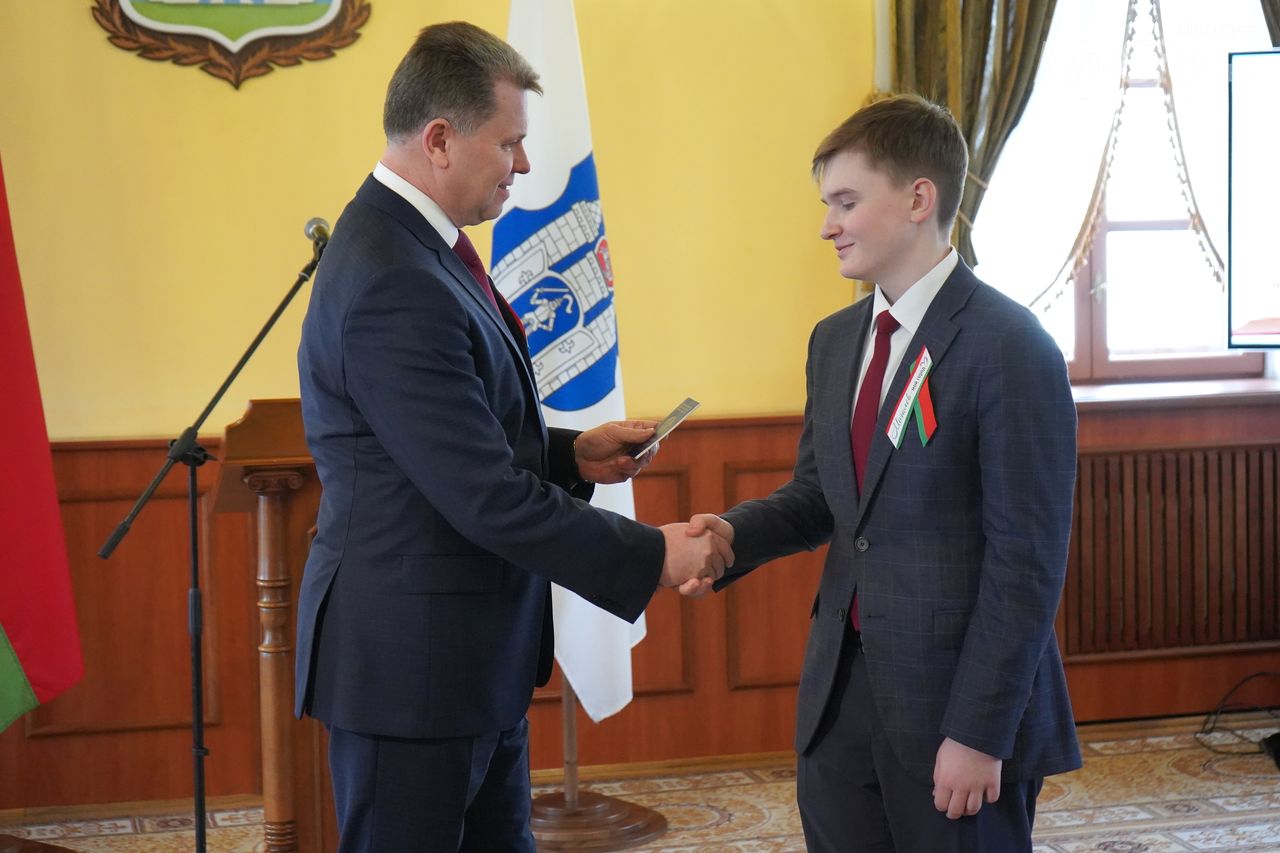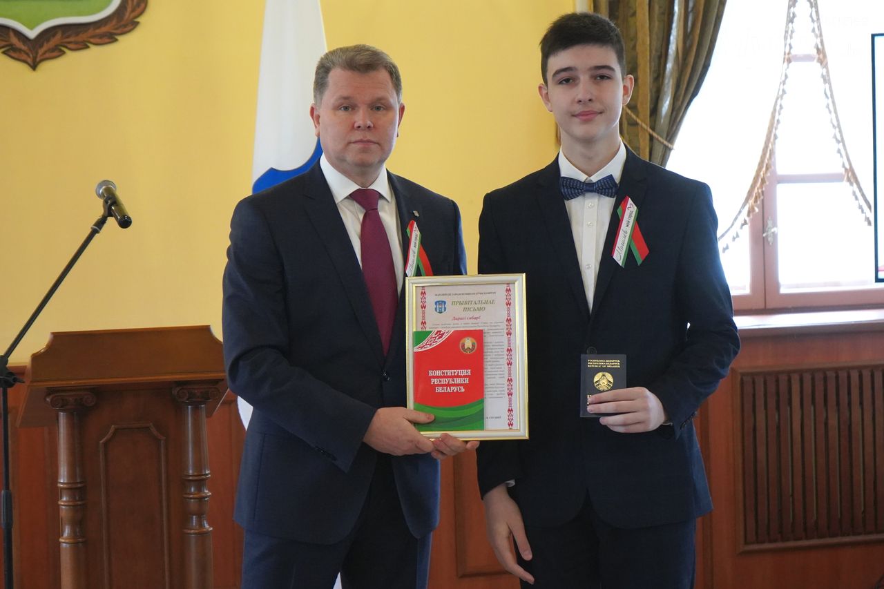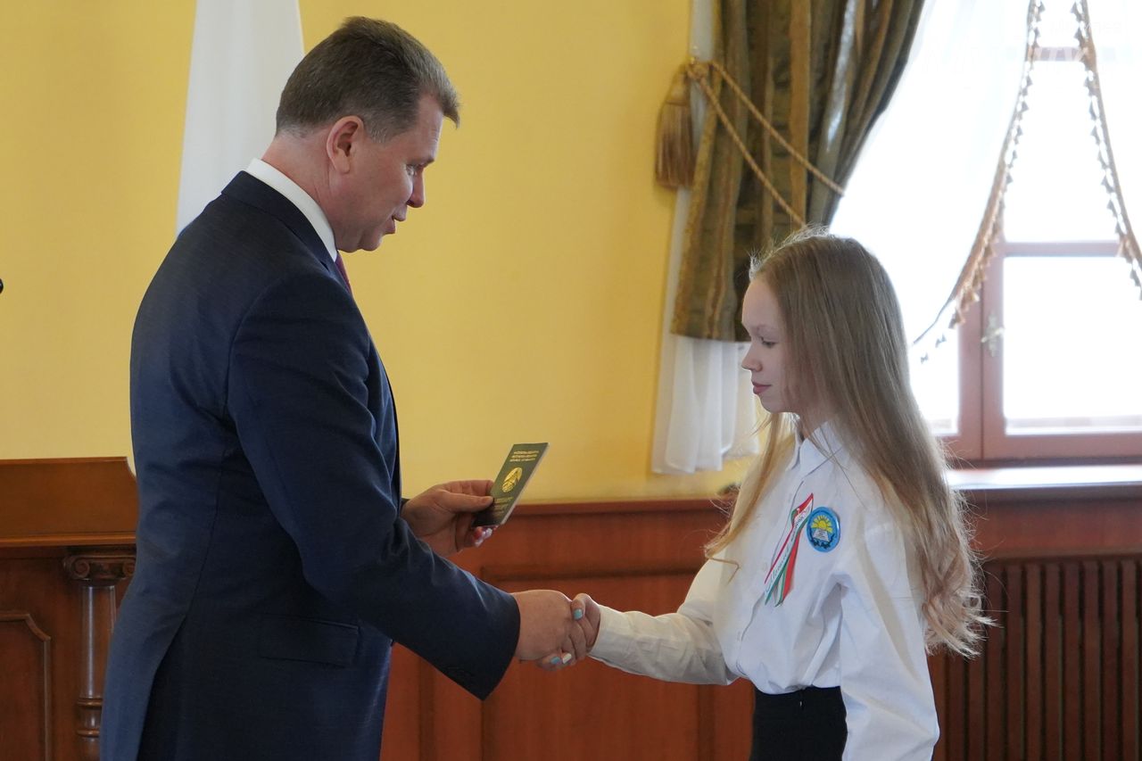Юные могилевчане — отличники учебы, победители и призеры различных соревнований, предметных олимпиад и творческих конкурсов — получили важный в жизни каждого белоруса документ, паспорт гражданина Республики Беларусь, из рук председателя Могилевского горисполкома Александра Студнева.