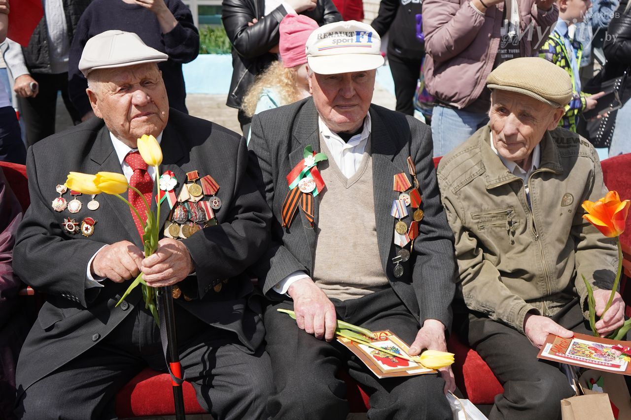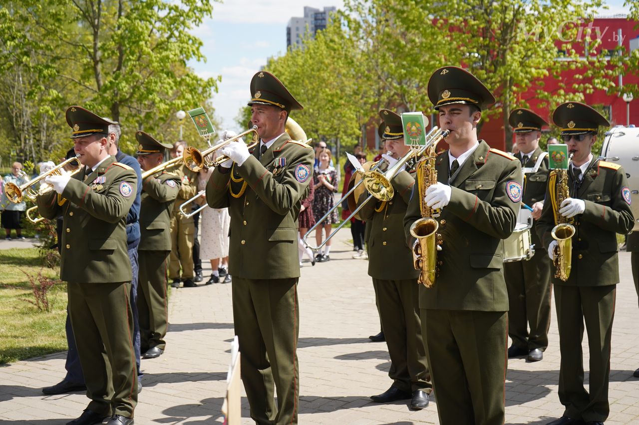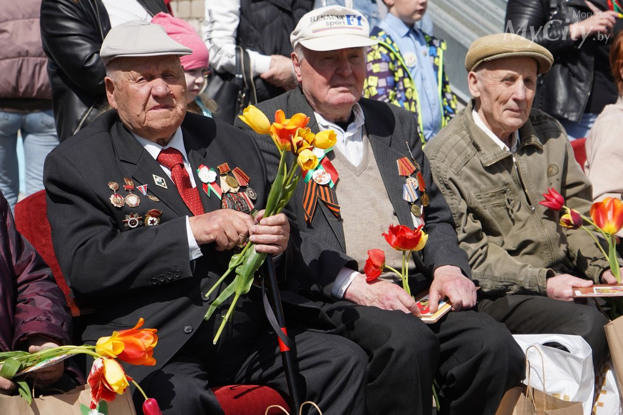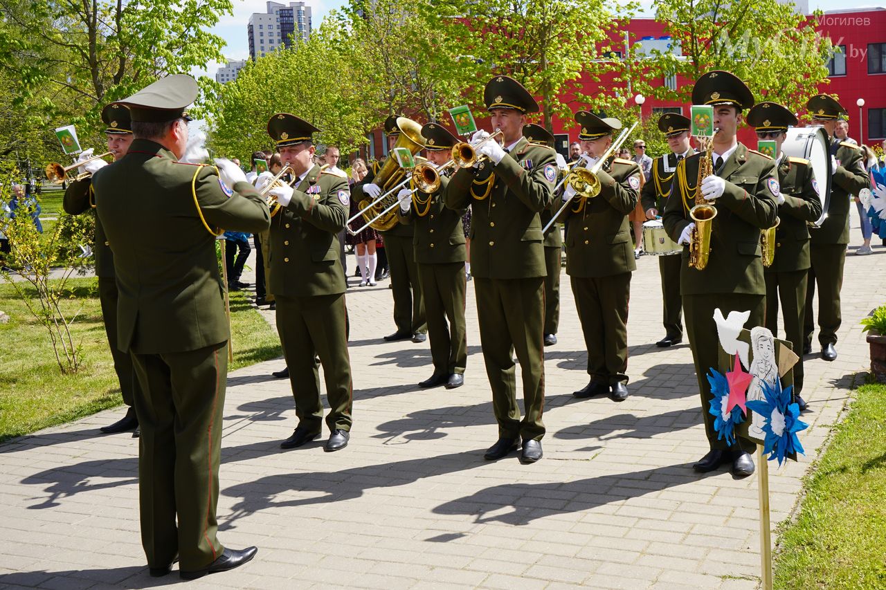 В Могилеве 13 пар из разных школ города станцевали «Победный вальс». Молодежным флешмобом ребята поздравили ветерана Великой Отечественной войны Федора Ивановича Кривоногова, бывших узников концлагерей, которые проживают в доме ветеранов, с Днем Победы.