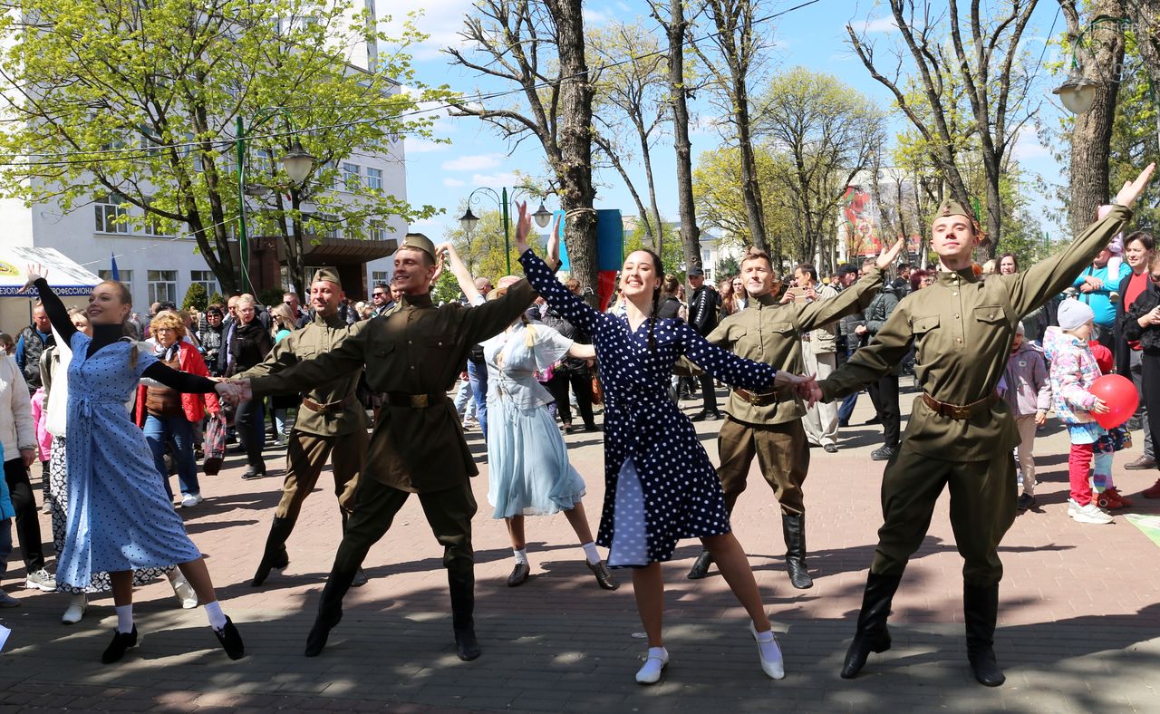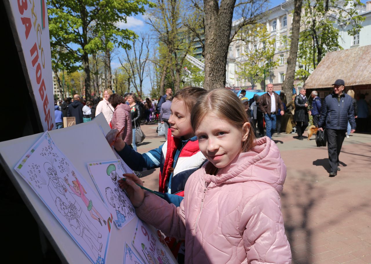 Праздничный концерт «Победному маю посвящается...» прошел на площади Звезд в Могилеве. В Комсомольском сквере в это же время работала патриотическая площадка «Война. Победа. Память» и состоялась акция «Пилотка Победы».
