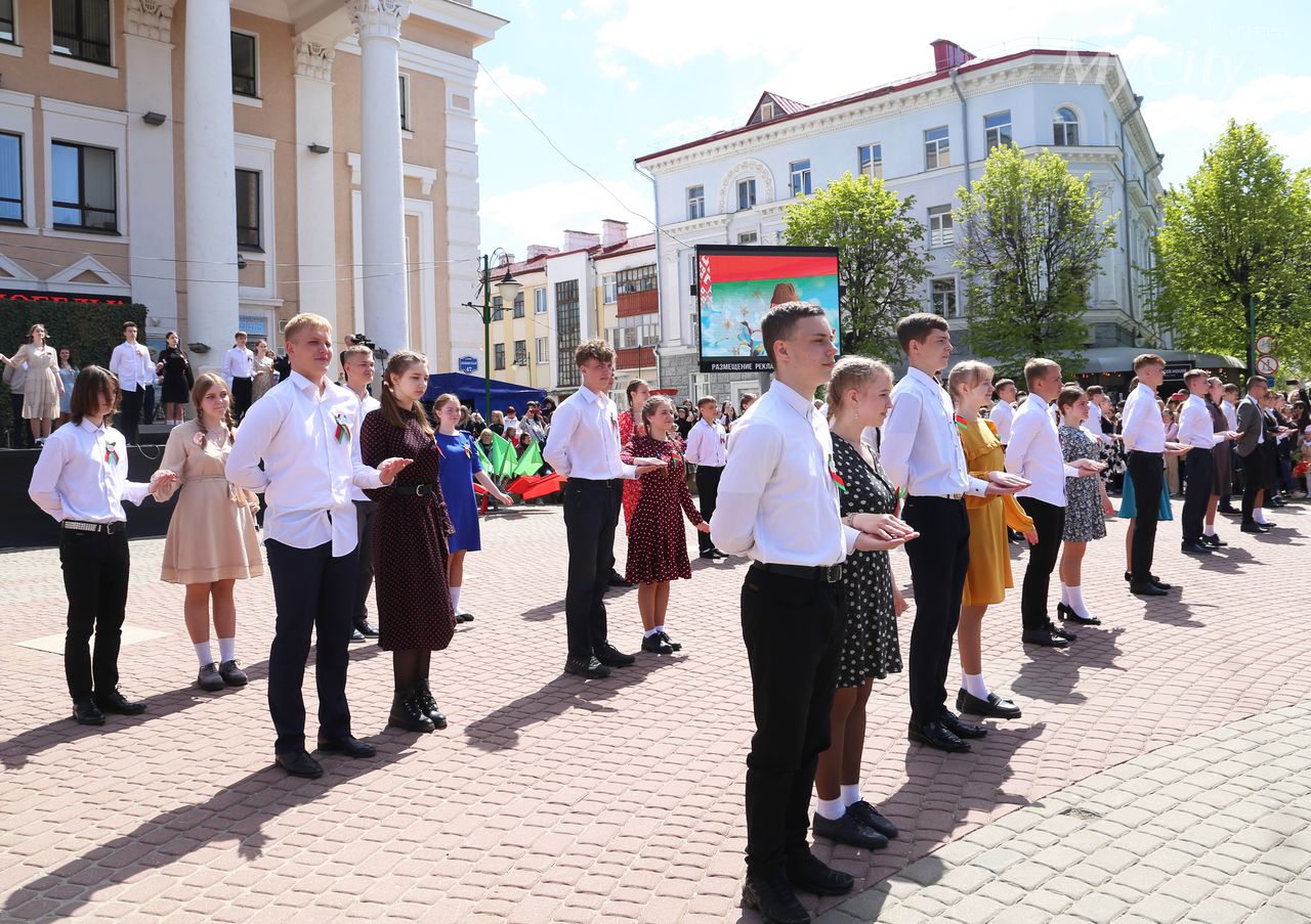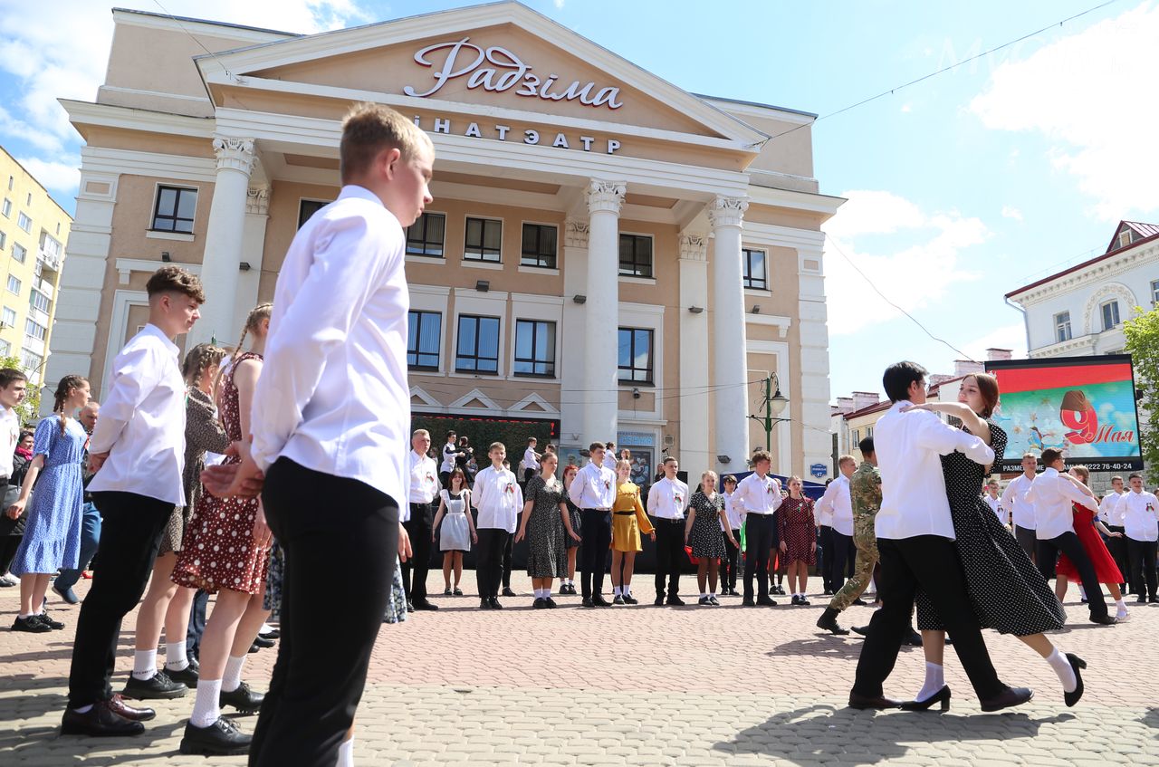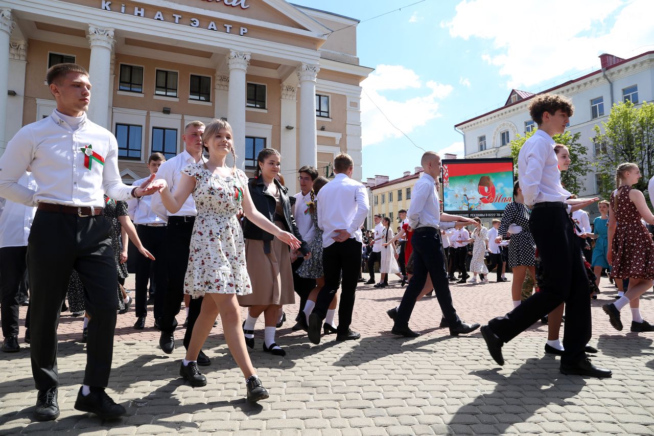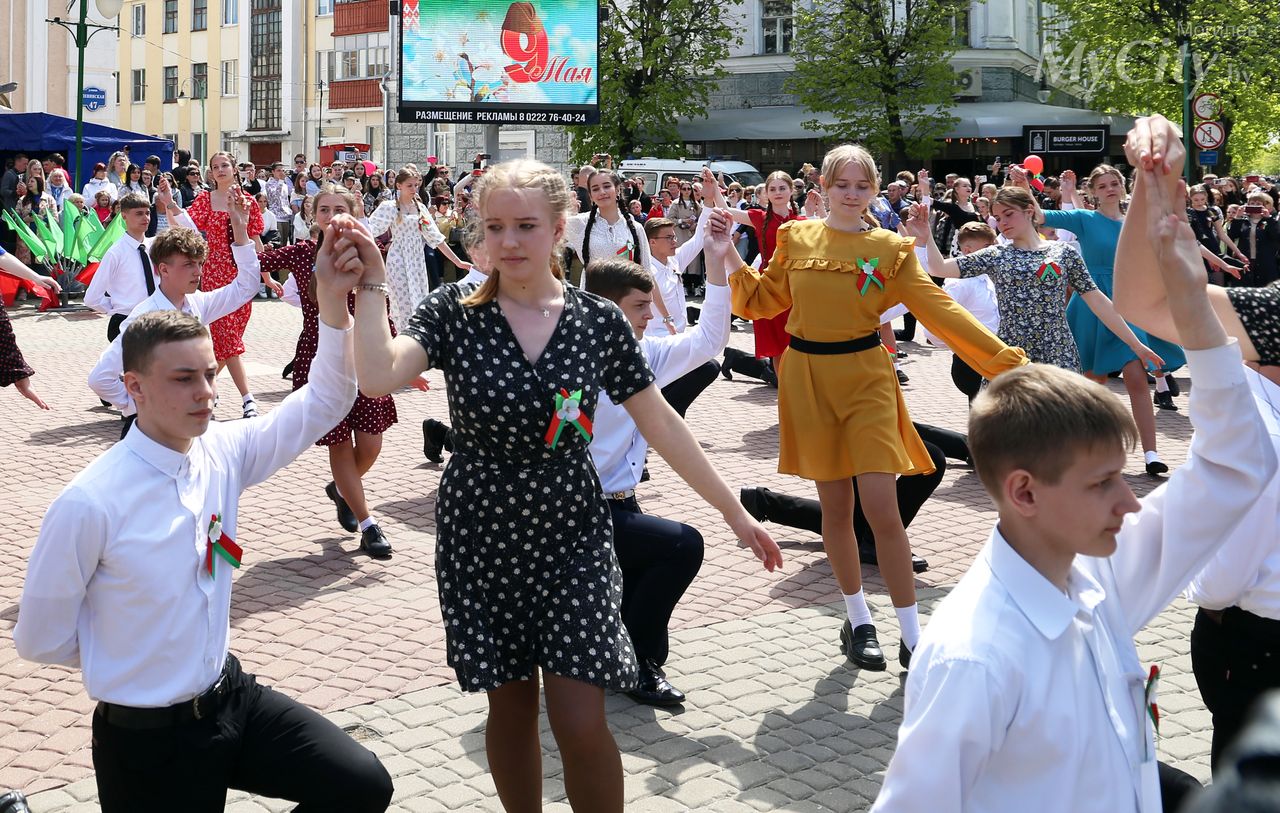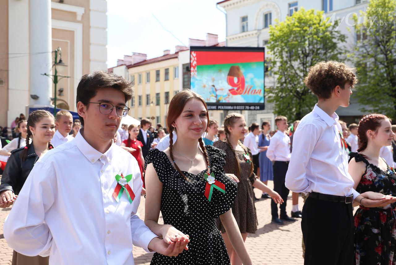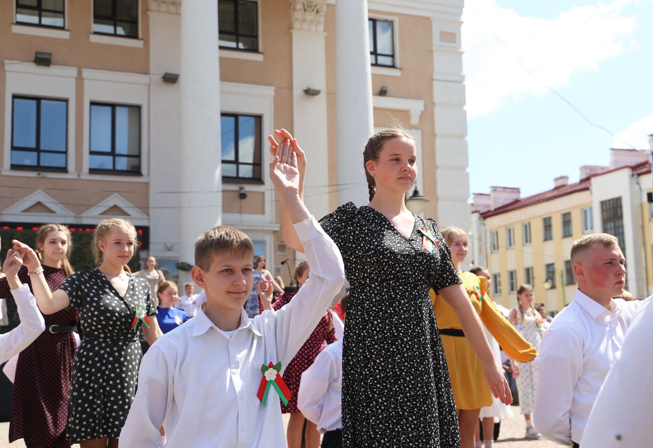 Городская акция «Вальс Победы» прошла на площади Звезд в Могилеве. Ее участниками по традиции стали учащиеся учреждений общего среднего образования города.