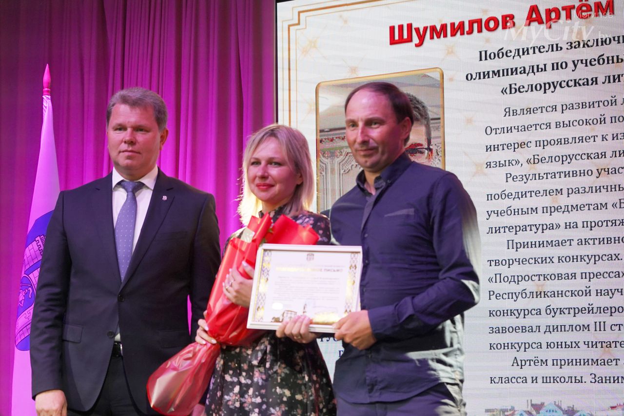 Родителей учащихся, ставших победителями заключительного этапа республиканской олимпиады по учебным предметам, чествовали в Могилеве Фото Юлия Фартух View the embedded image gallery online at: https://www.mycity.by/news/foto-news/5738-roditelej-uchashchikhsya-stavshikh-pobeditelyami-zaklyuchitelnogo-etapa-respublikanskoj-olimpiady-po-uchebnym-predmetam-chestvovali-v-mogileve#sigProId624675e06e Назад Вперед