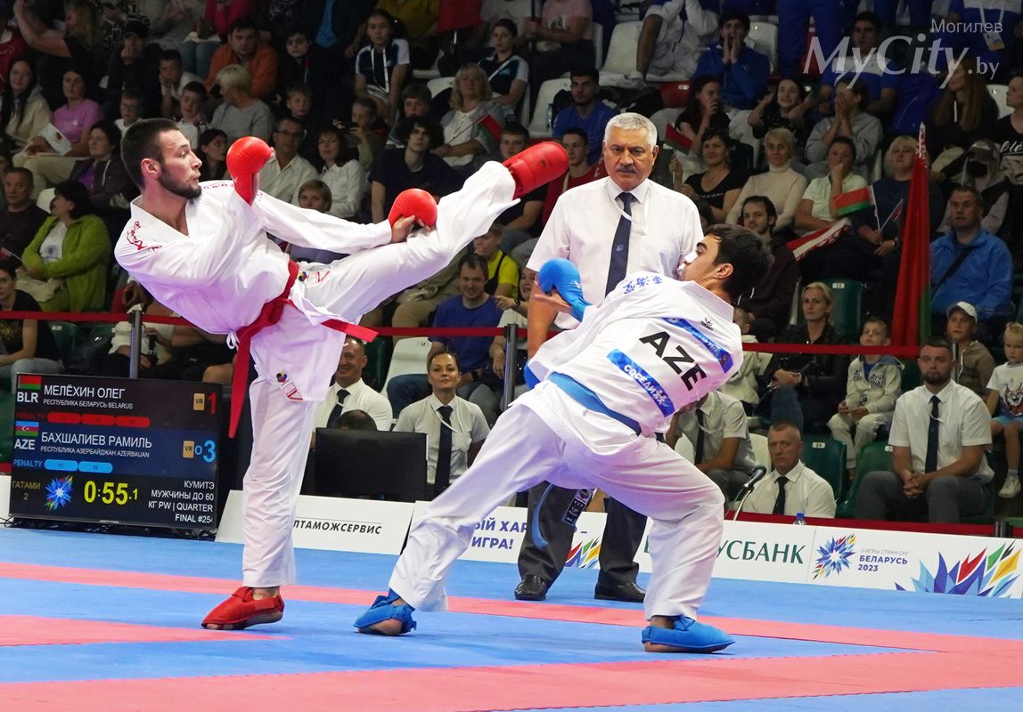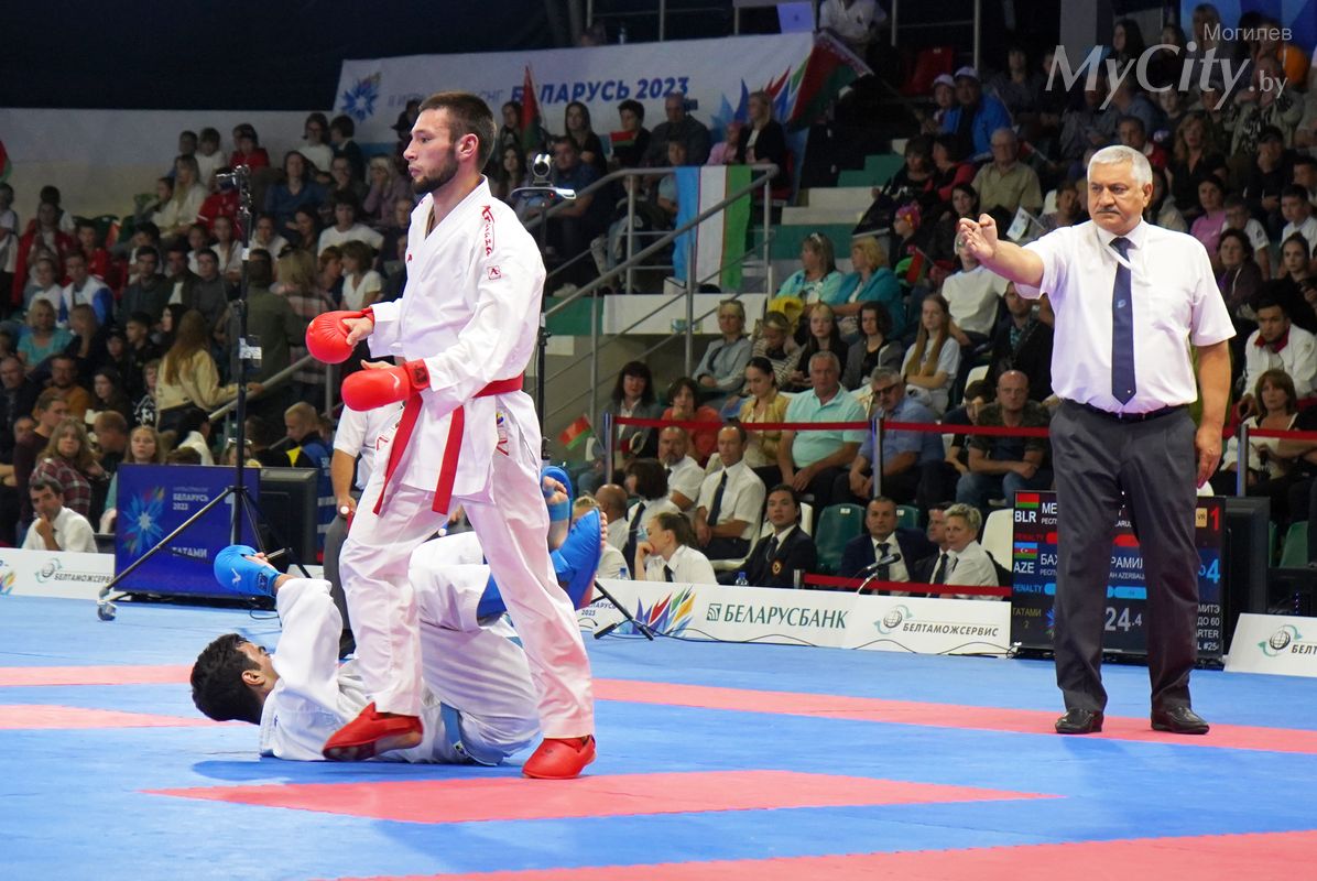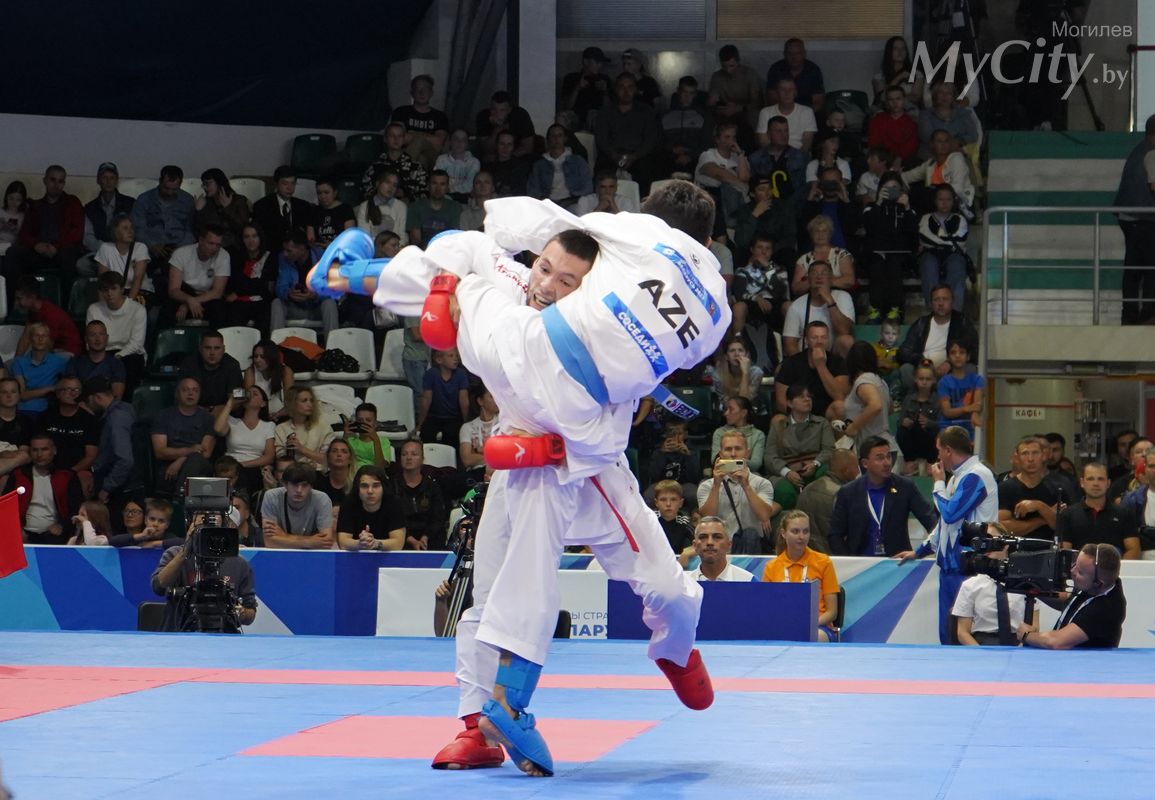 Соревнования по карате в программе II Игр стран СНГ стартовали в СК «Олимпиец». В Могилев приехали более 200 участников из 11 стран. Спортсмены выступают в 12 категориях.
