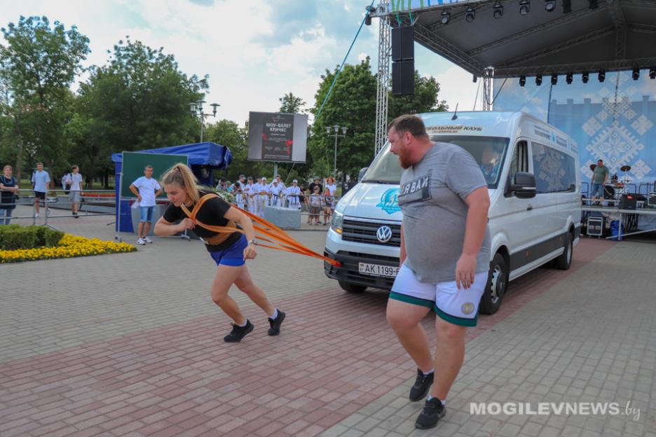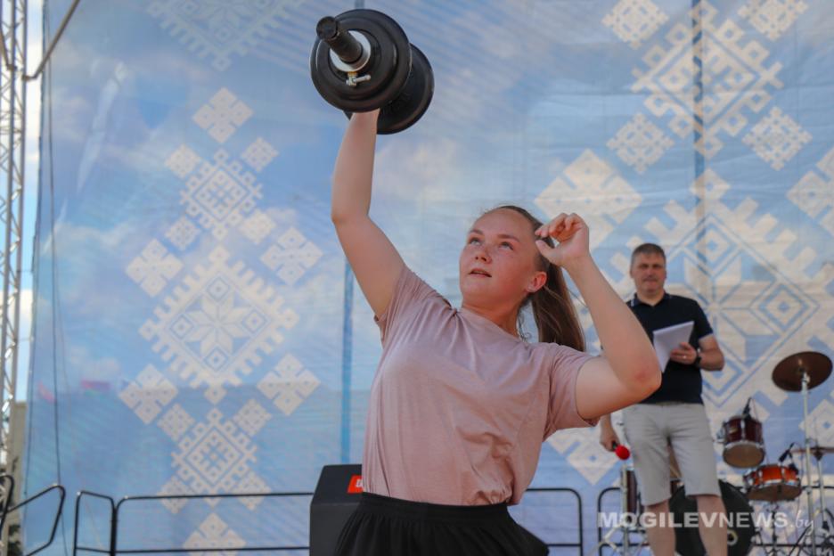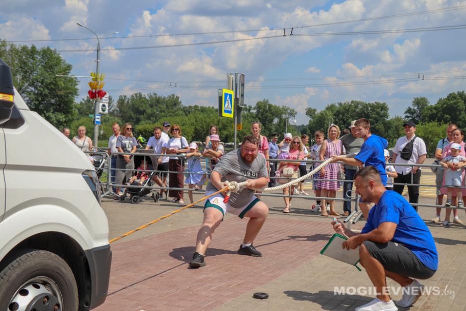 На открытой площадке возле Дворца культуры области в праздничный день собрались самые сильные и уверенные в себе жители Могилева. 5 парней и 3 девушки боролись за титул «Самый сильный могилевчанин. По итогам всех соревнований победителем у мужчин стал Денис Шех, именно он удостоился титула «Сильнейший могилевчанин». У женщин первой стала Ксения Шетикова.
