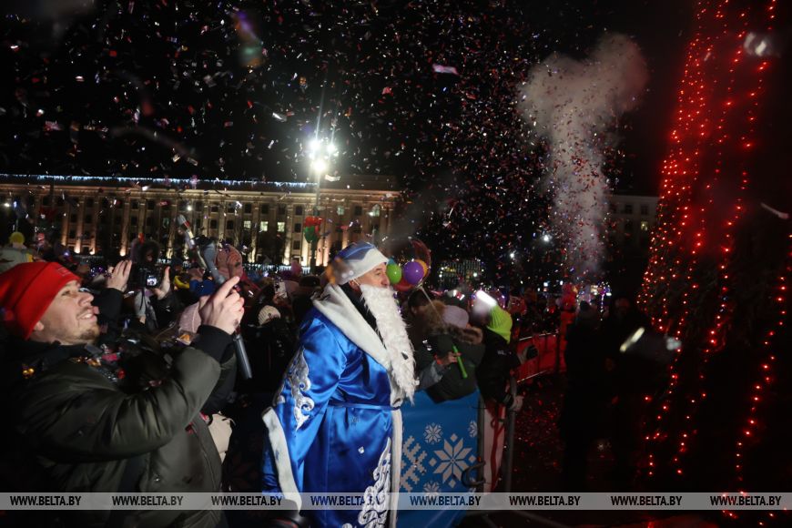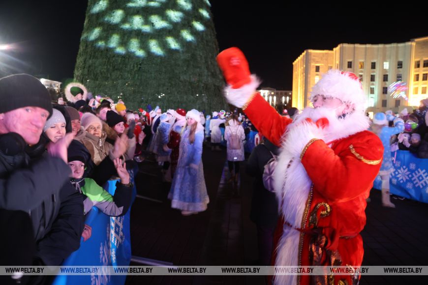В Могилеве на площади Ленина дали старт новогодним праздникам: здесь состоялась церемония зажжения огней на главной новогодней елке области.