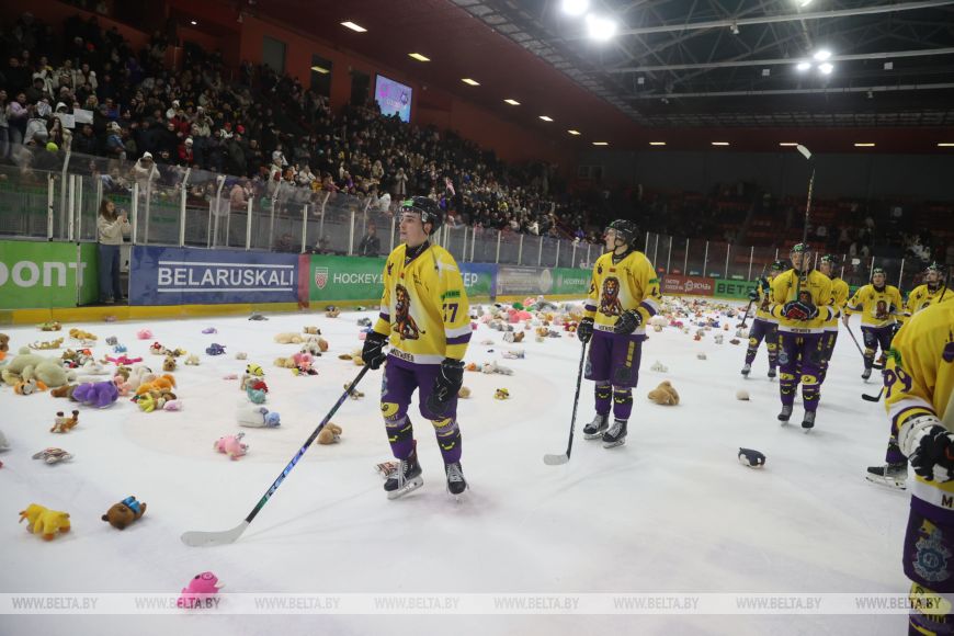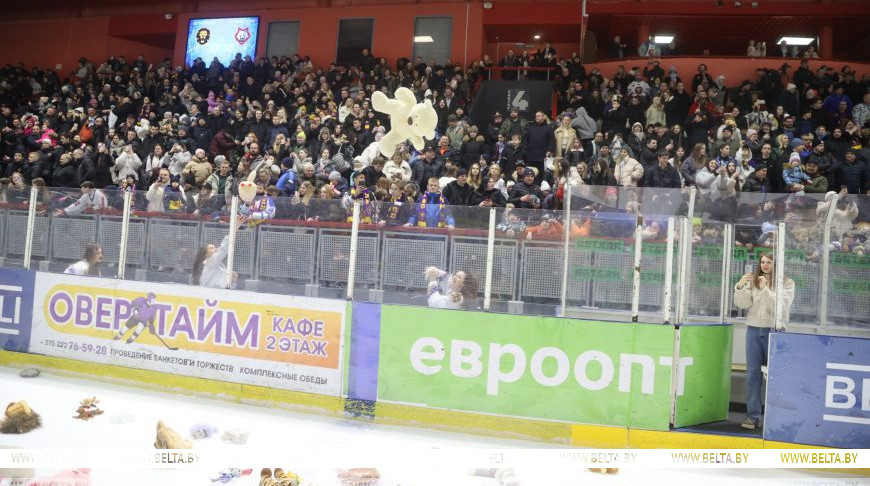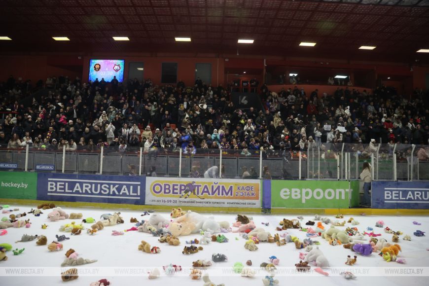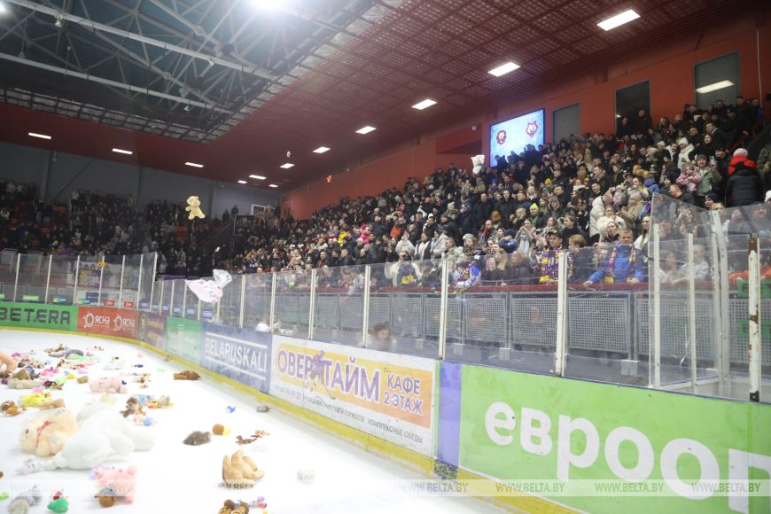 В Могилеве в рамках регулярного чемпионата белорусской экстралиги состоялся тематический матч «Хоккей глазами детей». Финальную сирену матча арена встретила «мишкопадом»: болельщики на трибунах выбросили на лед сотни игрушек, которые будут отправлены на благотворительность.