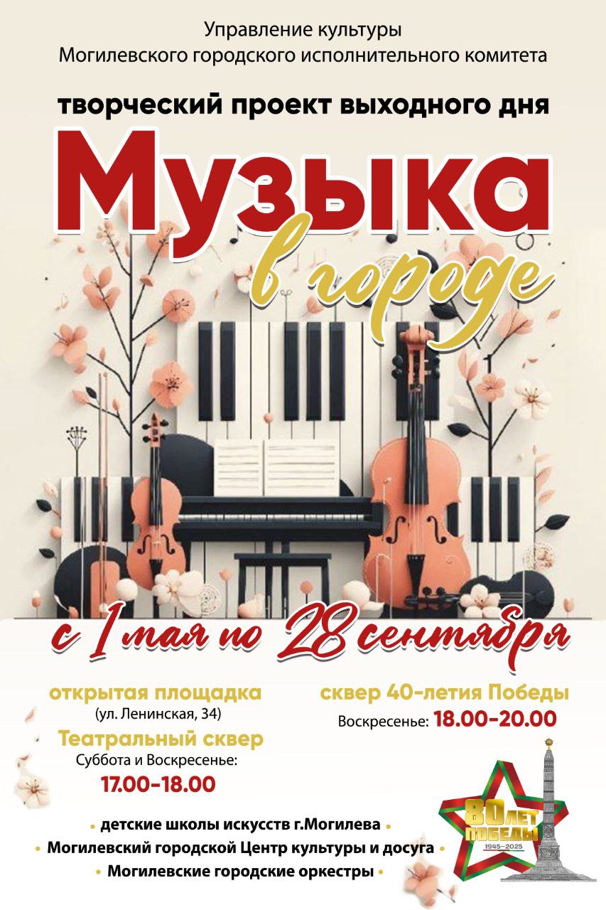 В Могилеве стартовал творческий проект выходного дня «Музыка в городе». Об этом сообщили в управлении культуры горисполкома.