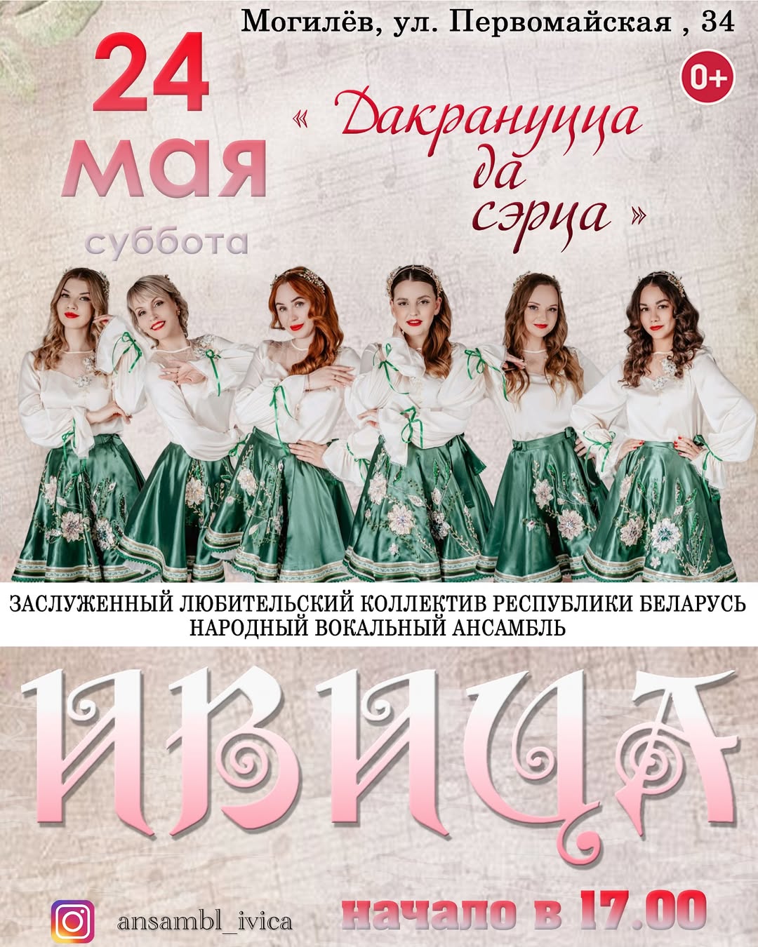 Сольный концерт Заслуженного любительского коллектива Республики Беларусь народного вокального ансамбля «Ивица» пройдет в Могилеве 24 мая.