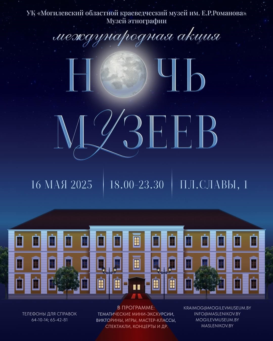 Ежегодная международная акция «Ночь музеев» пройдет 16 мая в Могилевском областном краеведческом музее и музее этнографии.