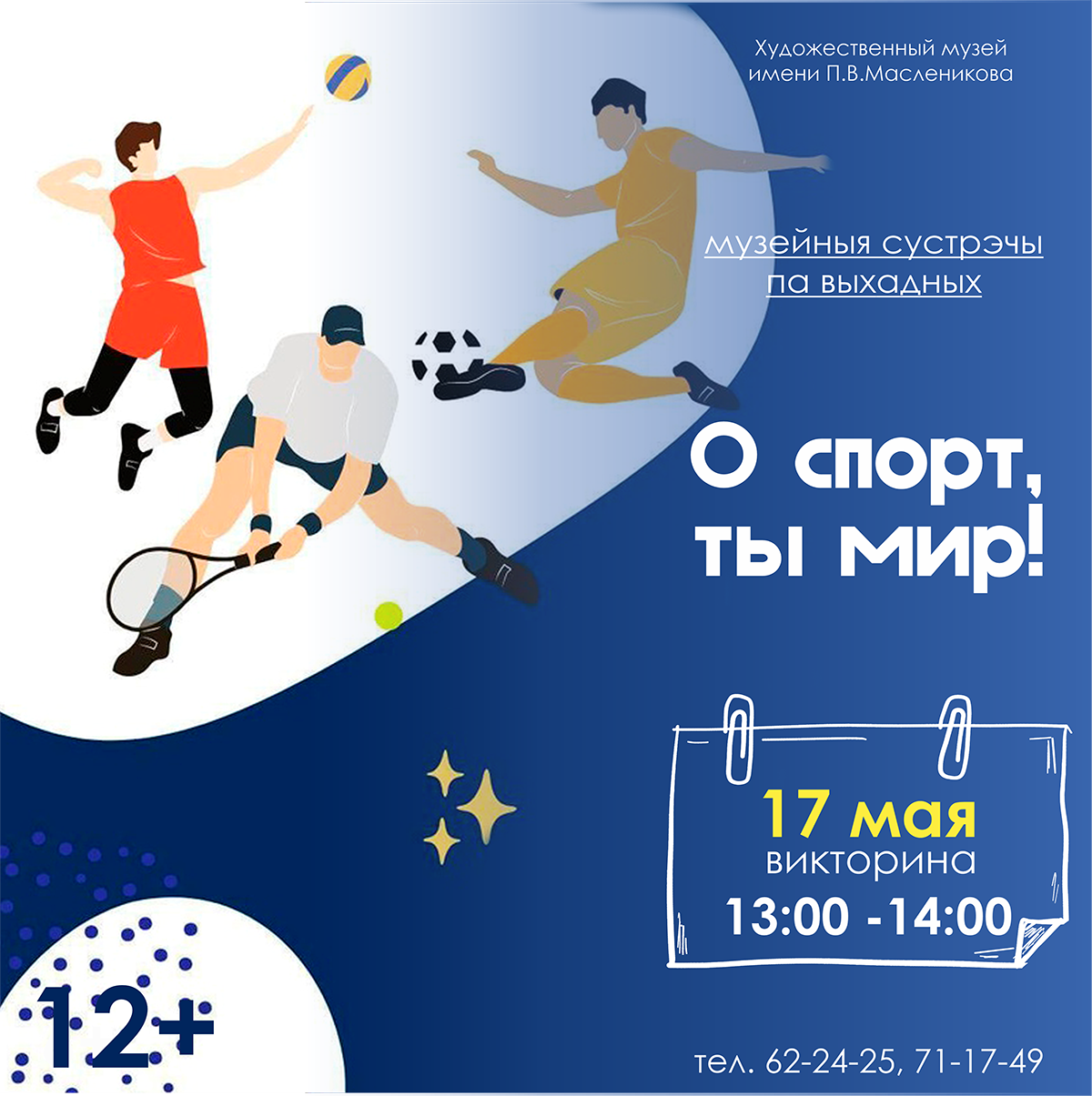 В воскресенье, 18 мая, в музее состоится экскурсия по картинной галерее П.В.Масленикова «Путь в искусство» (6+), во время которой участники мероприятия узнают о жизненном и творческом пути художника. Начало экскурсии в 13:00.