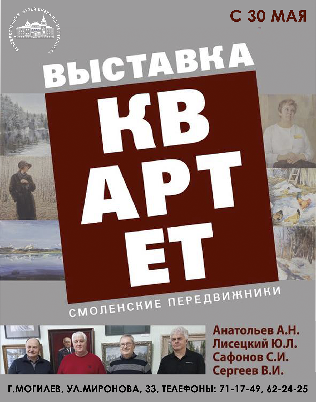 Выставка «Квартет» начнет работу 30 мая в художественном музее имени П.В. Масленикова Могилева (ул.Миронова, 33).