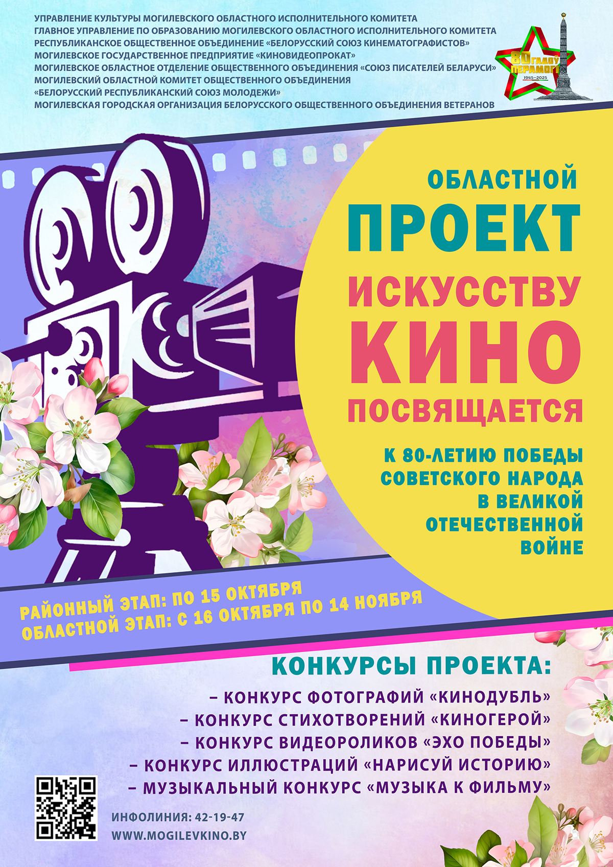 Могилевчан приглашают принять участие в областном проекте «Искусству кино посвящается» к 80-летию Победы советского народа в Великой Отечественной войне.