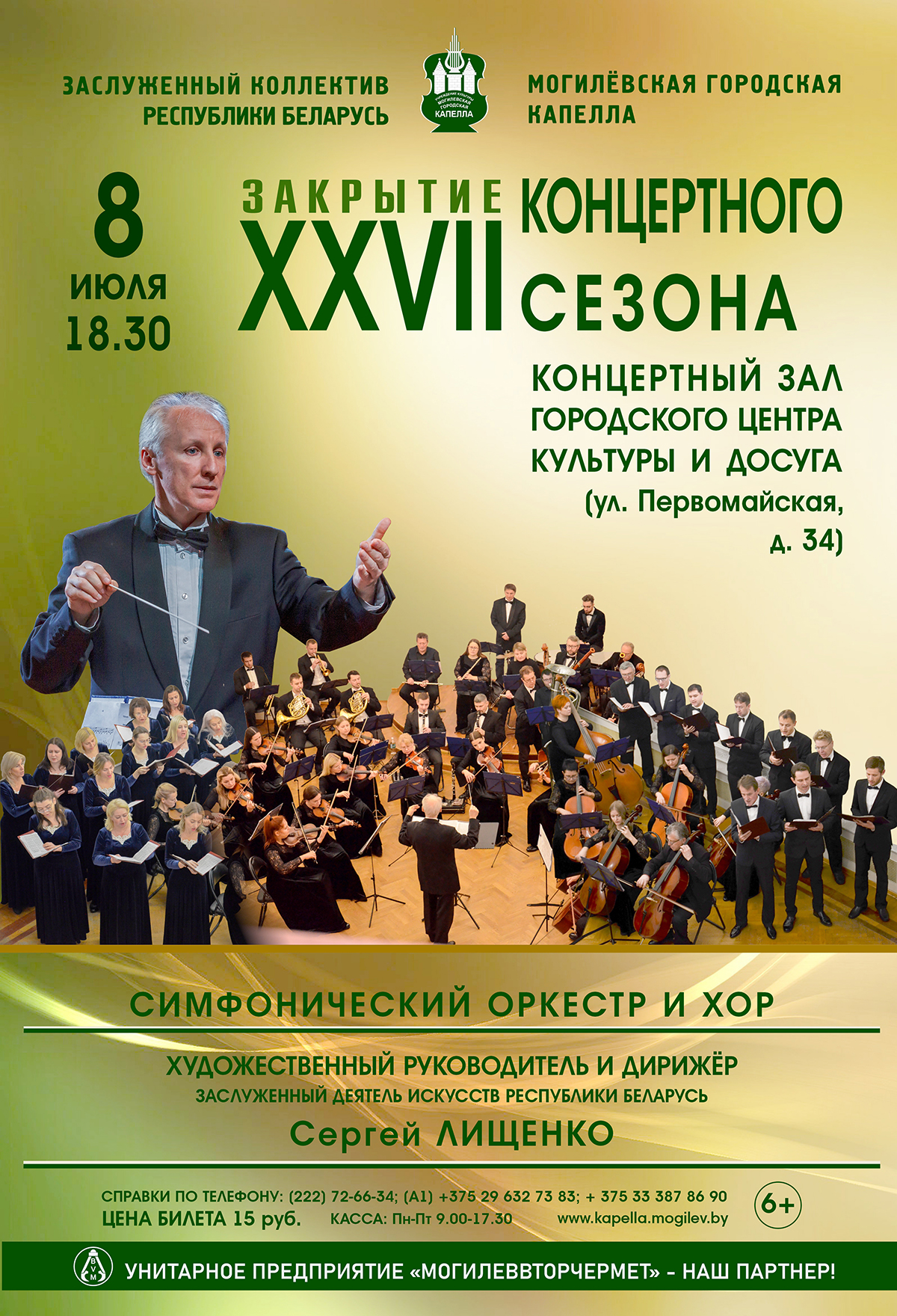 С большим концертом по случаю закрытия сезона выступит Заслуженный коллектив Республики Беларусь Могилевская городская капелла 8 июля.