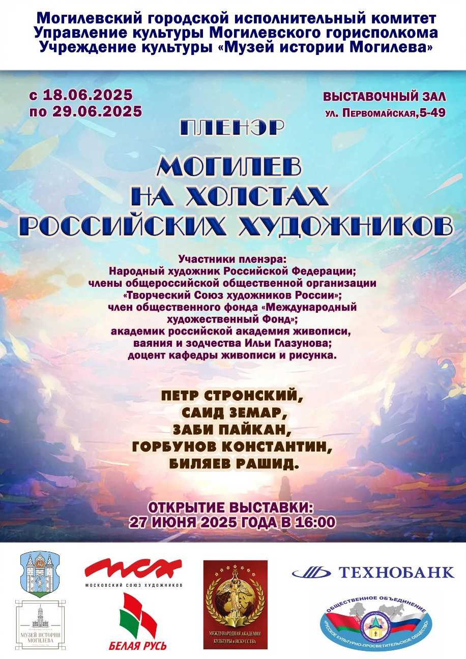 Художники изобразят на своих полотнах знаковые места города и события, связанные с историей Могилева. В рамках арт-пленэра пройдут мастер-классы и творческие встречи, что позволит не только увидеть, как работают мастера кисти, но и лично пообщаться с именитыми художниками.