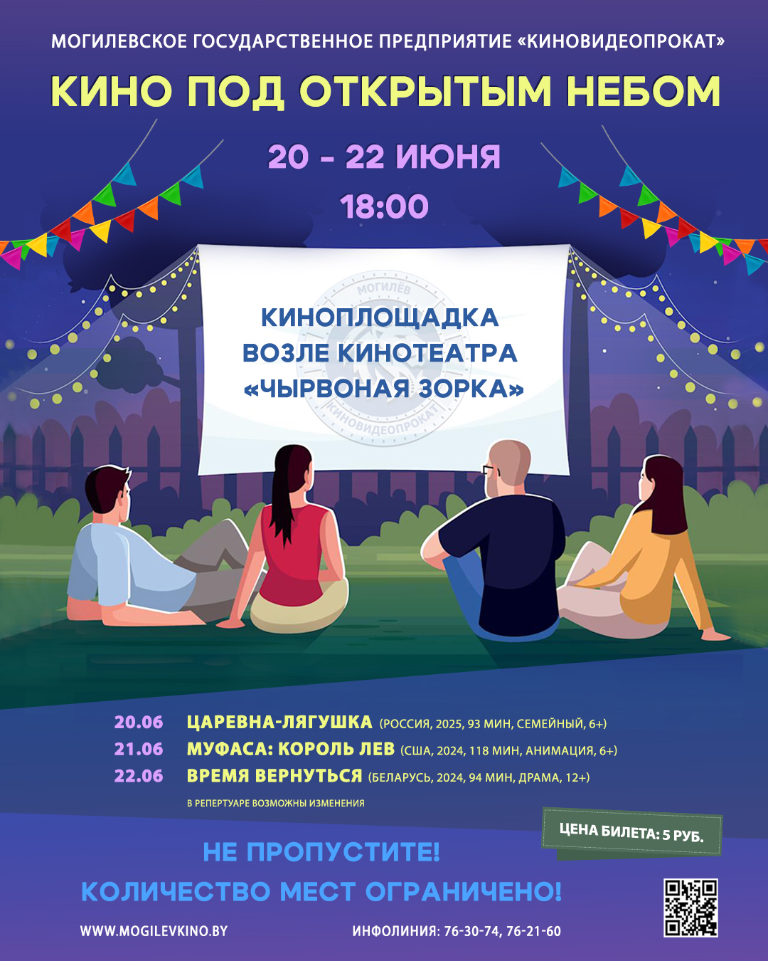 Могилевчан приглашают на «Кино под открытым небом» – площадка будет работать у кинотеатра «Чырвоная Зорка» все лето с пятницы по воскресенье. Об этом сообщили на предприятии «Киновидеопрокат».