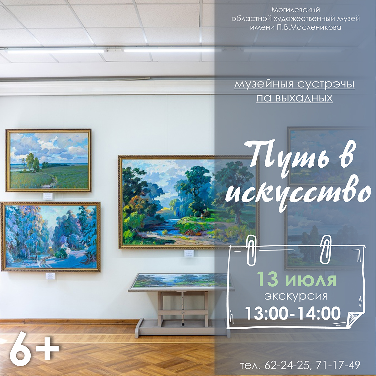 В воскресенье, 13 июля, также с 13:00 до 14:00 состоится экскурсия по картинной галерее П.В. Масленикова «Путь в искусство» (6+).