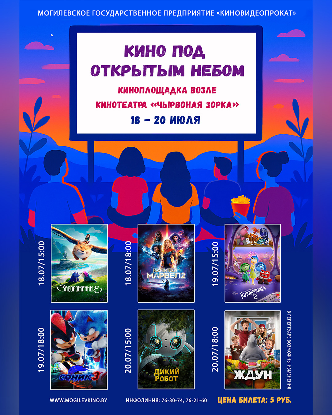 В субботу, 19 июля, в 15:00 можно посмотреть мультфильм «Головоломка 2», в 18:00 – фантастику «Соник 3 в кино».