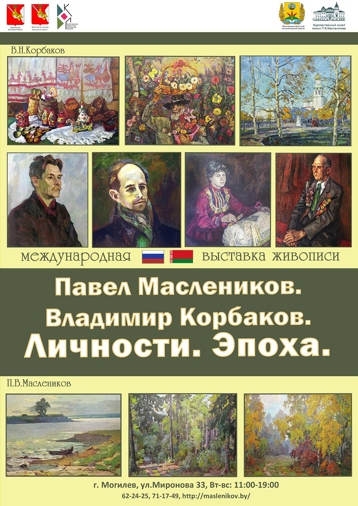 Совместный белорусско-российский проект «Павел Маслеников. Владимир Корбаков. Личности. Эпоха» начнет работу 22 августа в художественном музее им. П.В.Масленикова (ул.Миронова, 33).