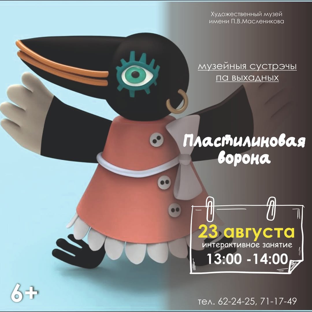 Интерактивное занятие «Пластилиновая ворона» состоится в субботу, 23 августа, в художественном музее им. П.В.Масленикова (ул.Миронова, 33).