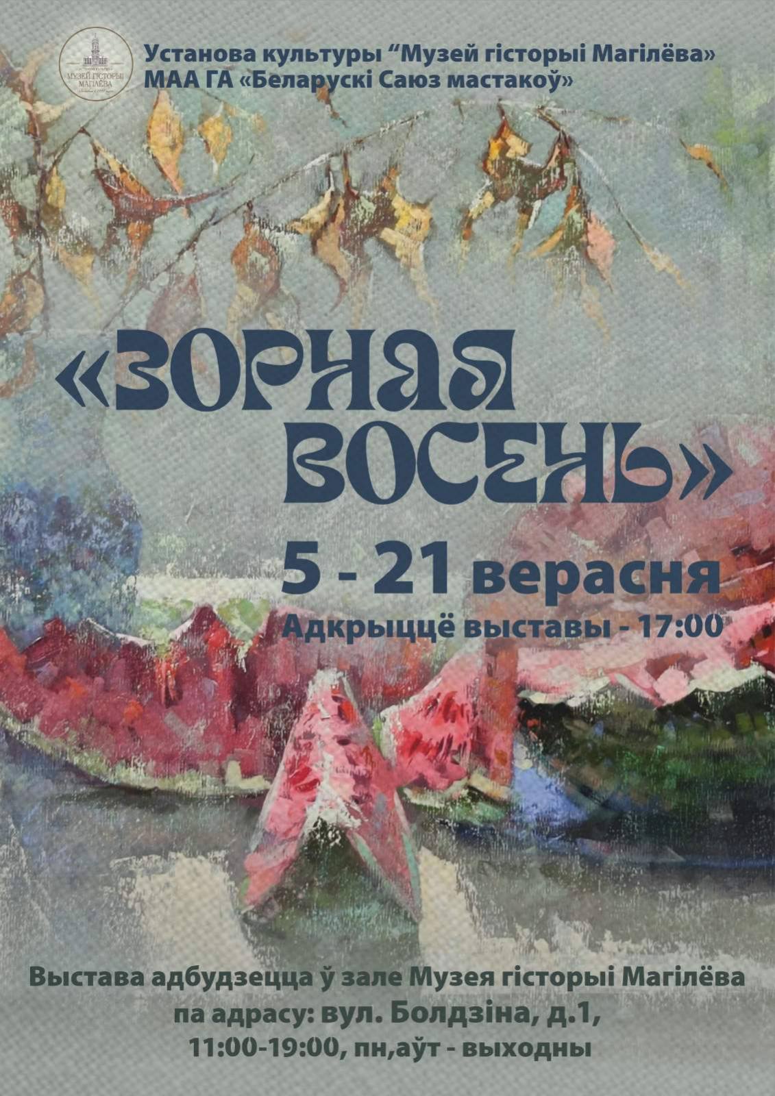 В выставочном зале Музея истории Могилева 5 сентября в 17:00 состоится открытие традиционной ежегодной выставки членов Могилевского областного отделения Белорусского союза художников «Зорная восень».