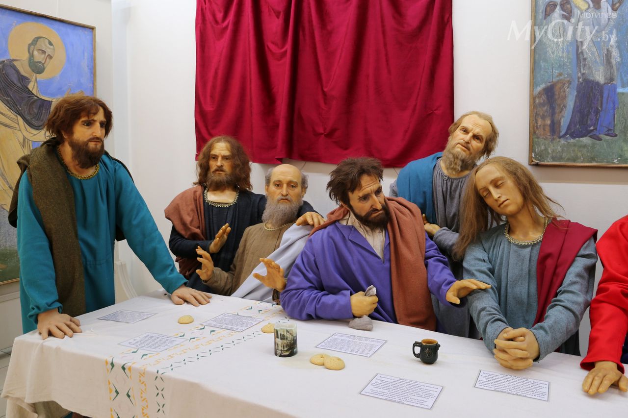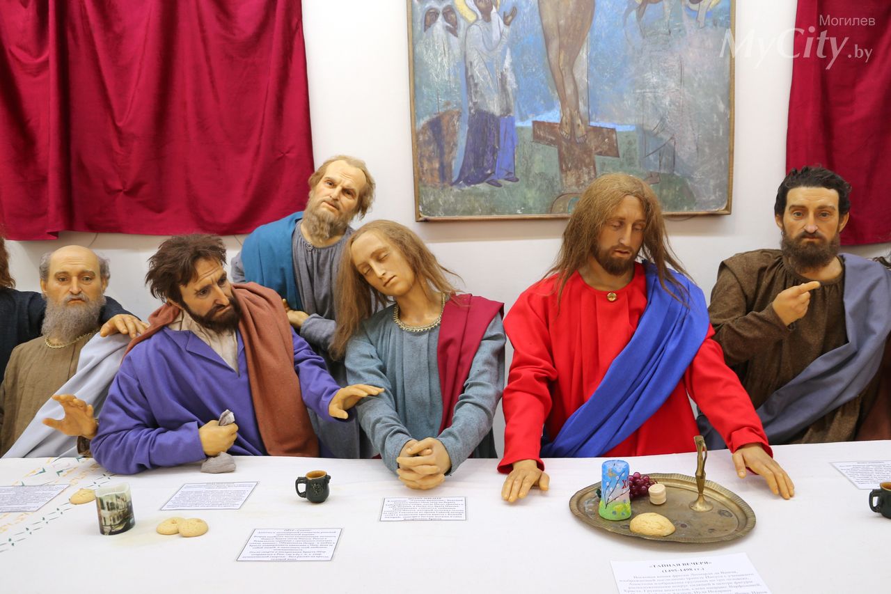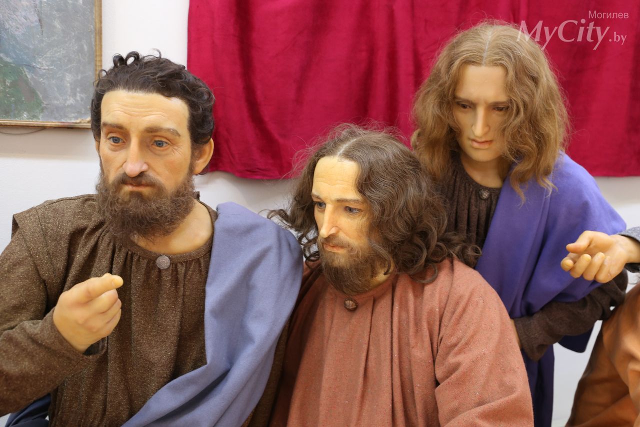 Всего же на выставке представлено 29 восковых фигур, среди которых фигуры Христа и апостолов, восседающих за столом, фигуры царской семьи, Федора Достоевского, Николая Гоголя, Александра Пушкина, преподобного Серафима Саровского, равноапостольной княгини Ольги, Ефросиньи Полоцкой и др.