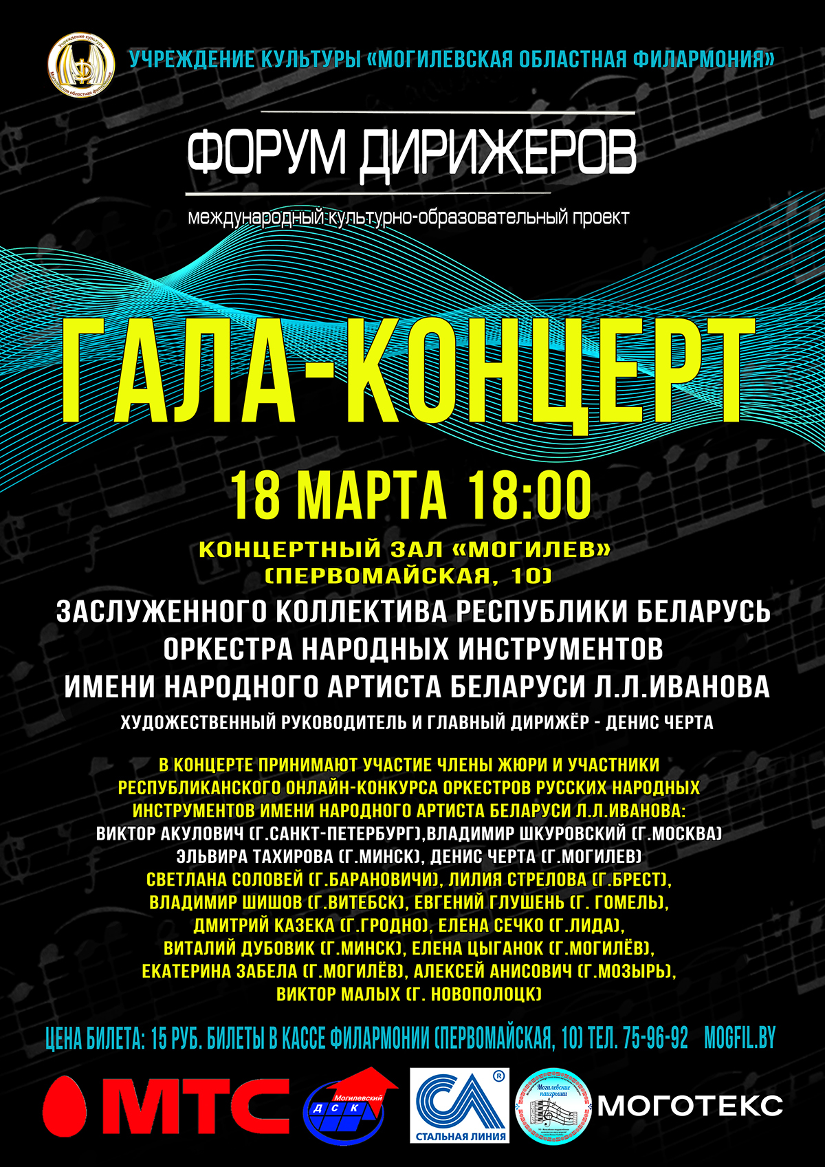 Гала-концерт заслуженного коллектива Республики Беларусь оркестра народных инструментов им. Леонида Иванова состоится в рамках международного культурно-образовательного проекта «Форум дирижёров» 18 марта, сообщили в областной филармонии.