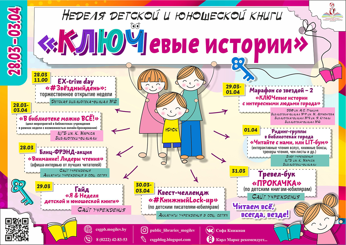«Открыть» главную тайну праздника ребята смогут с 30 марта по 3 апреля, пройдя квест-челлендж «#КнижныйLock-up». В каждый из этих дней в аккаунтах в соцсетях в 11.00 будут выкладываться задания, посвященные писателям-юбилярам. Чем больше собрано ключиков — тем выше шансы на победу (самые активные ребята получат дипломы и памятные подарки).