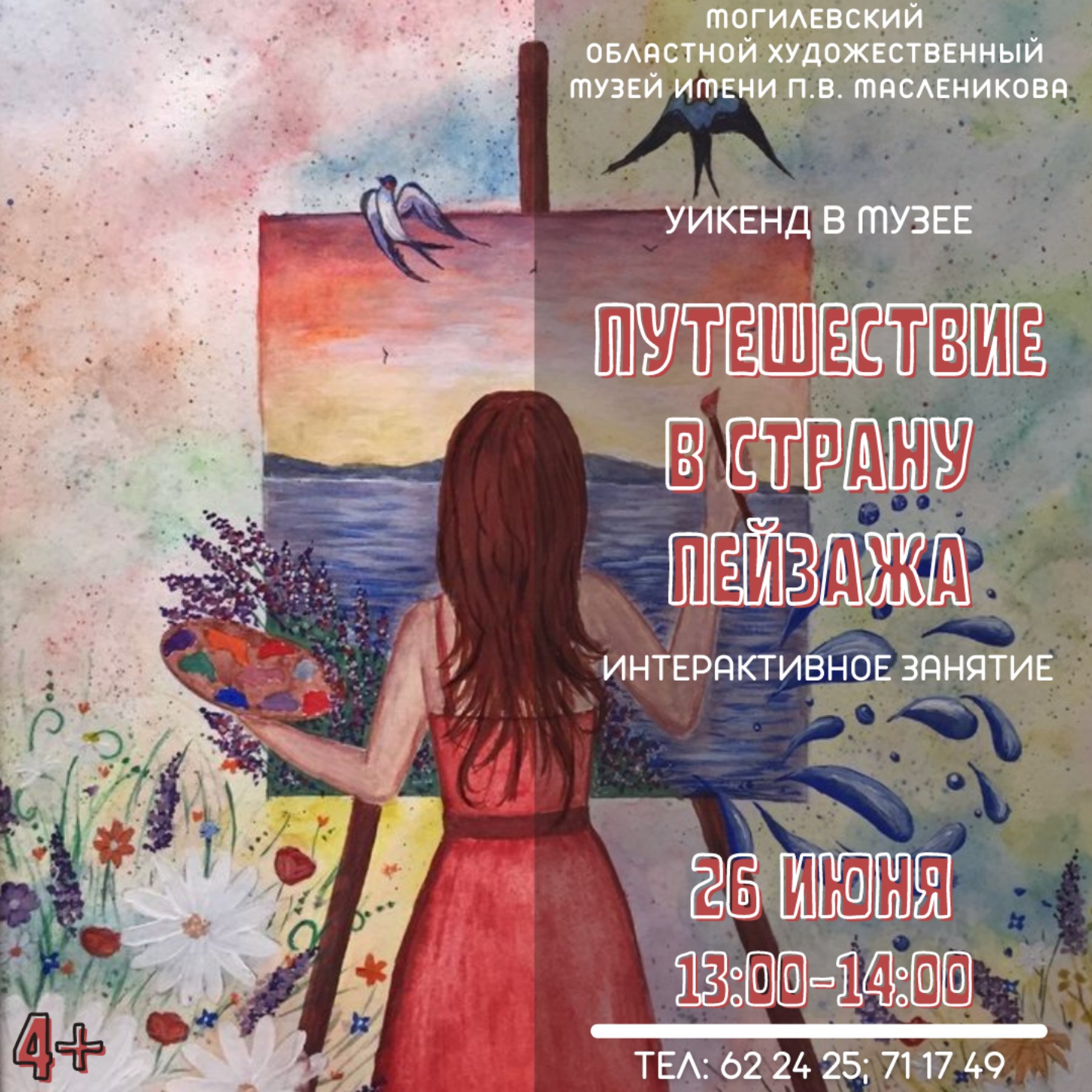 26 июня (воскресенье) в музее состоится интерактивное занятие «Путешествие в страну пейзажа». Мероприятие рассчитано на детей дошкольного и младшего школьного возраста. Во время занятия ребята в игровой форме расширят свои знания о таком жанре изобразительного искусства как пейзаж, а также смогут познакомиться с картинной галереей народного художника Беларуси П.В. Масленикова и его великолепными пейзажами. Начало в 13.00.