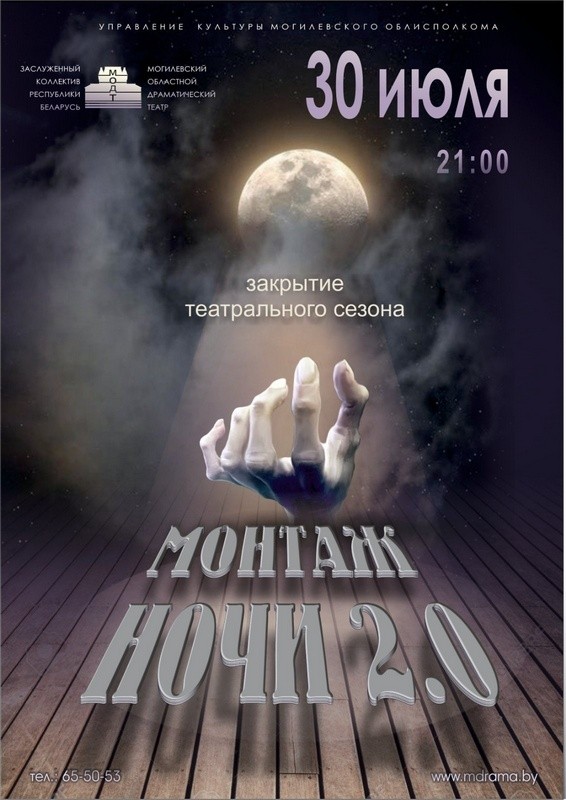 Мистическо-технологическое театральное действо с элементами поэзии, пластики и аутентичного саунда «Монтаж ночи 2.0» (18+) представят в Могилевском драмтеатре. «Ночь» начнется 30 июля в 21:00 с показа премьерного спектакля «Человеческий голос», а закончится… 31 июля.