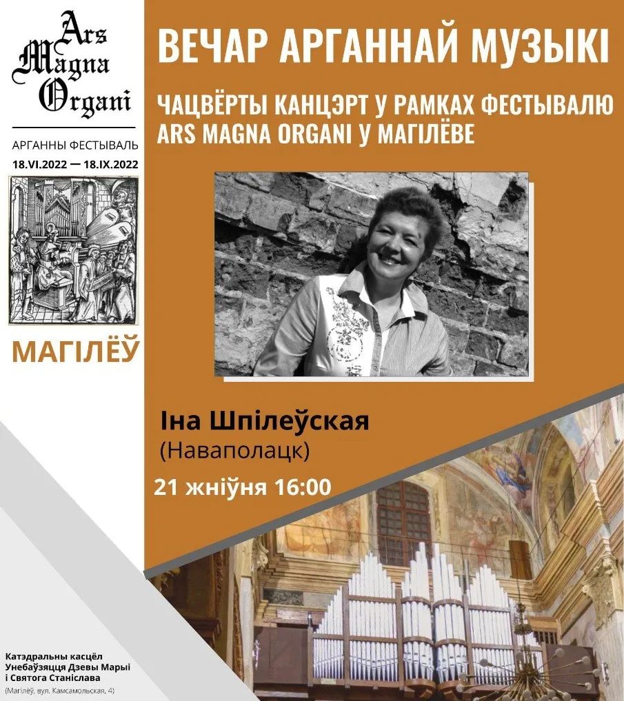 Четвертый концерт органной музыки состоится в Могилеве 21 августа в рамках Международного фестиваля Ars Magna Organi. Исполнитель – Инна Шпилевская из Новополоцка.
