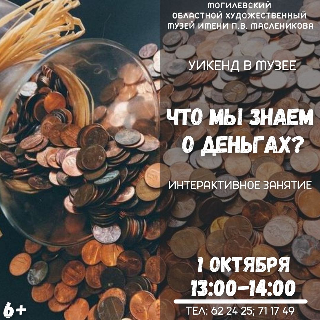 В субботу, 1 октября, с 13:00 до 14:00 пройдет интерактивное занятие «Что мы знаем о деньгах?» (6+).