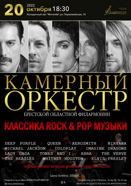 Камерный оркестр Брестской областной филармонии и солисты оркестра выступят в Могилеве с проектом «Классика ROCK & POP музыки» 20 октября.