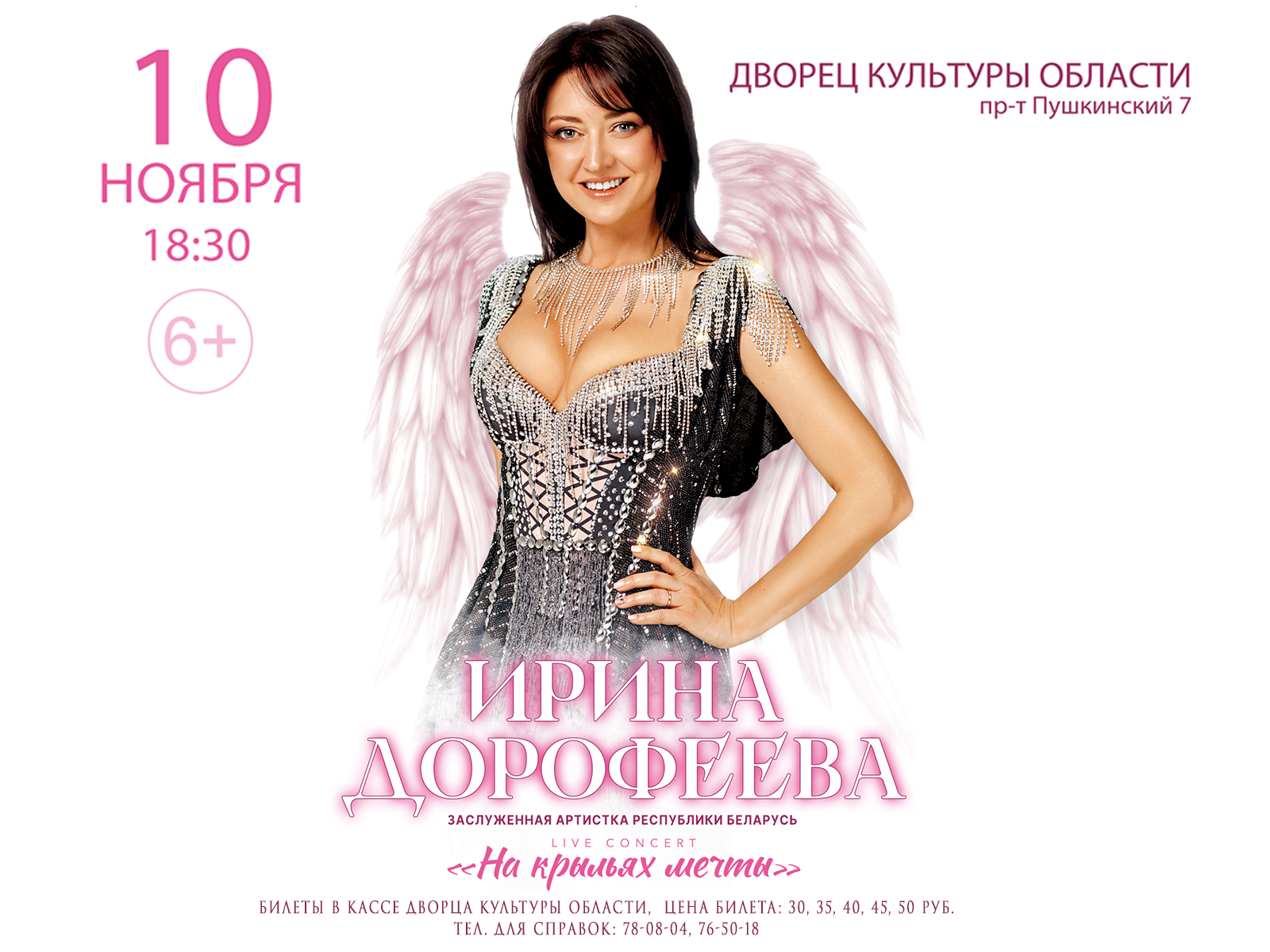 — Ирина Дорофеева подарит зрителям новую концертную шоу—программу «На крыльях мечты», во время которой прозвучат как известные хиты исполнительницы, так и премьеры новых песен, — рассказали в ДК области.