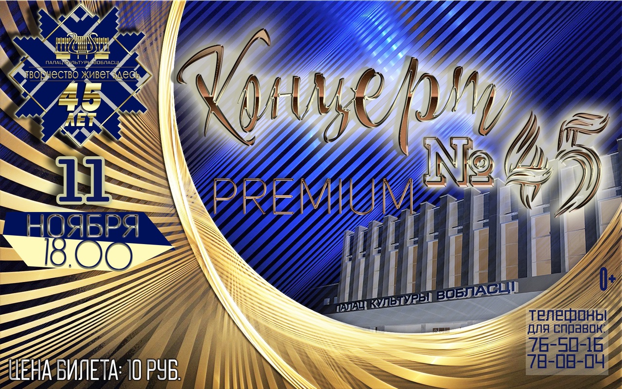 Дворец культуры области в этом году отмечает свое 45-летие. По этому случаю учреждение культуры приглашает могилевчан на юбилейный концерт №45 PREMIUM.