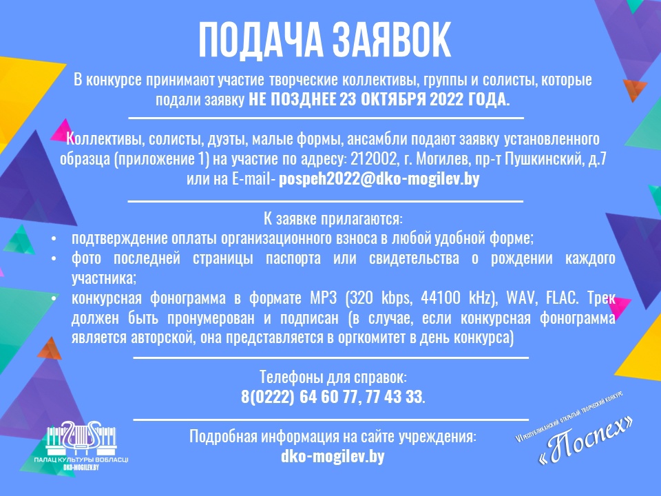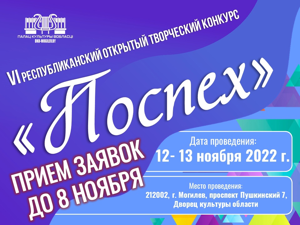 Могилевчан приглашают принять участие в VI Республиканском открытом творческом конкурсе «Поспех», который пройдет 12-13 ноября в ДК области.