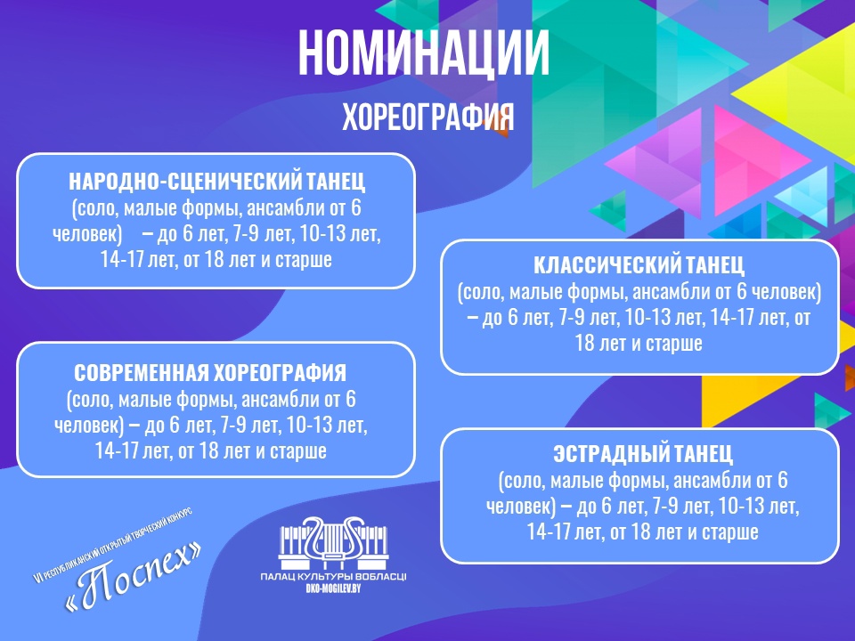 Участники будут представлены в четырех номинациях — хореография, вокал, инструментальное исполнительство, театральное искусство.
