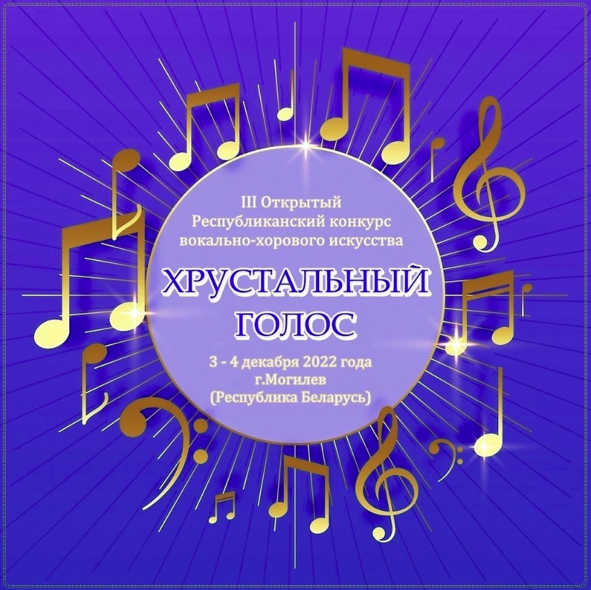 В Могилеве 3-4 декабря пройдет III Открытый Республиканский конкурс вокально-хорового искусства «Хрустальный голос». Заявку на участие в творческом состязании желающие могут подать до 28 ноября.