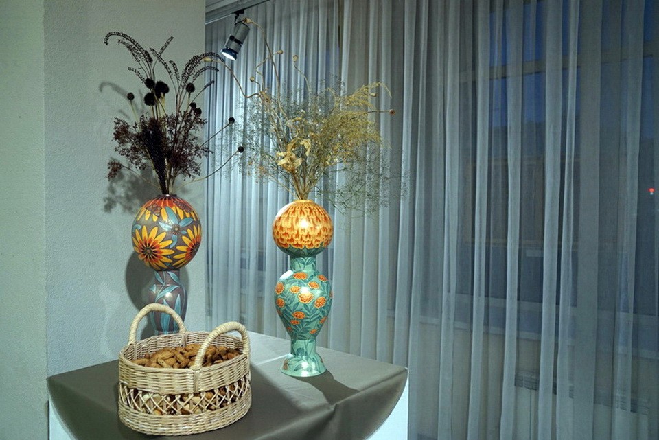 — Все, что касается осени, я посадила на эту клумбу. Это ограниченное пространство — Выставочный зал, и в нем вся моя осень, — рассказывает автор. — Я люблю цветы просто за то, что они растут. И хотела сохранить это до зимы (выставка будет работать до 18 декабря, — прим. автора). Люблю осень за то, что сквозь серость проглядывают красные ягодки, золотые листочки, и вся эта палитра выглядит очень ярко, — говорит Марина Нестерук. — Хочу, чтобы люди, которые будут приходить сюда, просто отдыхали, а не искали какой-то смысл. Хотя там заложен глубокий философский смысл, настолько глубокий, что его и искать не надо. Он вылез с той стороны прямо на поверхность, — улыбается художница.