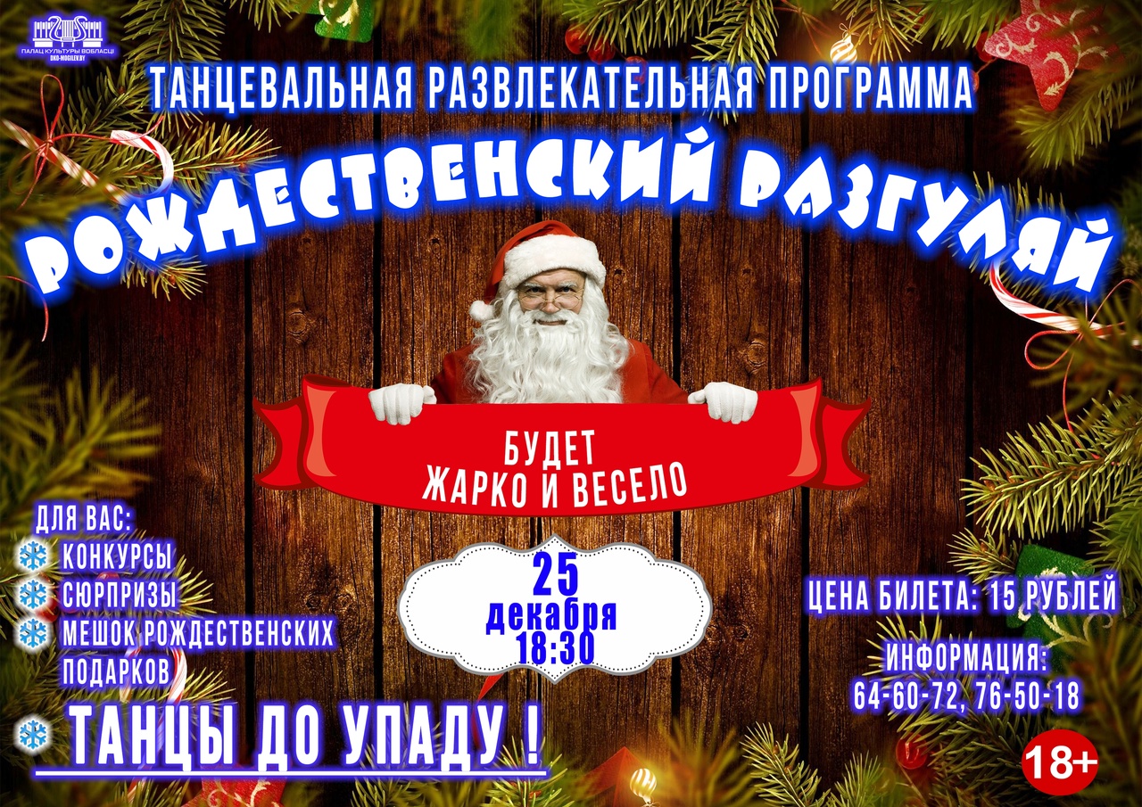 Как рассказали в учреждении культуры, участников праздника ожидают конкурсы, сюрпризы, рождественские подарки, отличное настроение и, конечно, танцы до упада. Возрастное ограничение 18+.