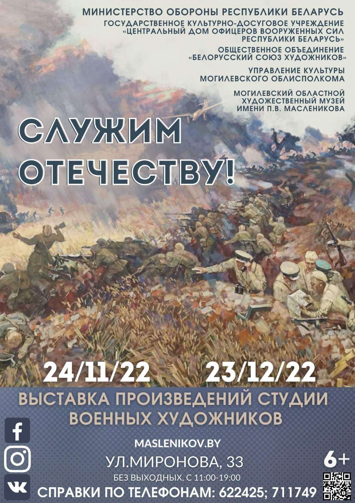 Выставка произведений студии военных художников «Служим Отечеству!» начнет работу в музее им. П.В. Масленикова 24 ноября, сообщили в учреждении культуры.