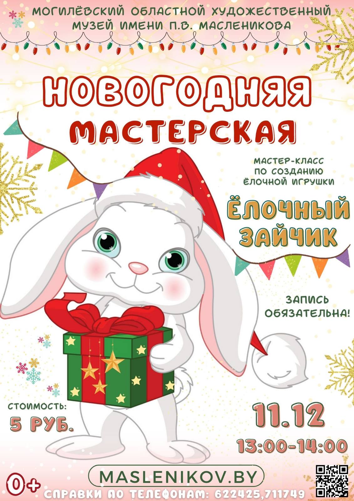 Очередной мастер-класс «Ёлочный зайчик» (0+) по созданию елочной игрушки пройдет с 13:00 до 14:00.