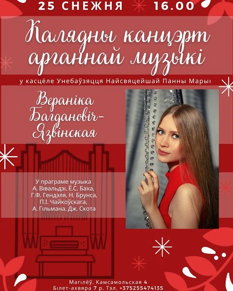 Рождественский концерт органной музыки пройдет 25 декабря в костеле Успения Девы Марии и Святого Станислава в Могилеве (ул. Комсомольская, 4).