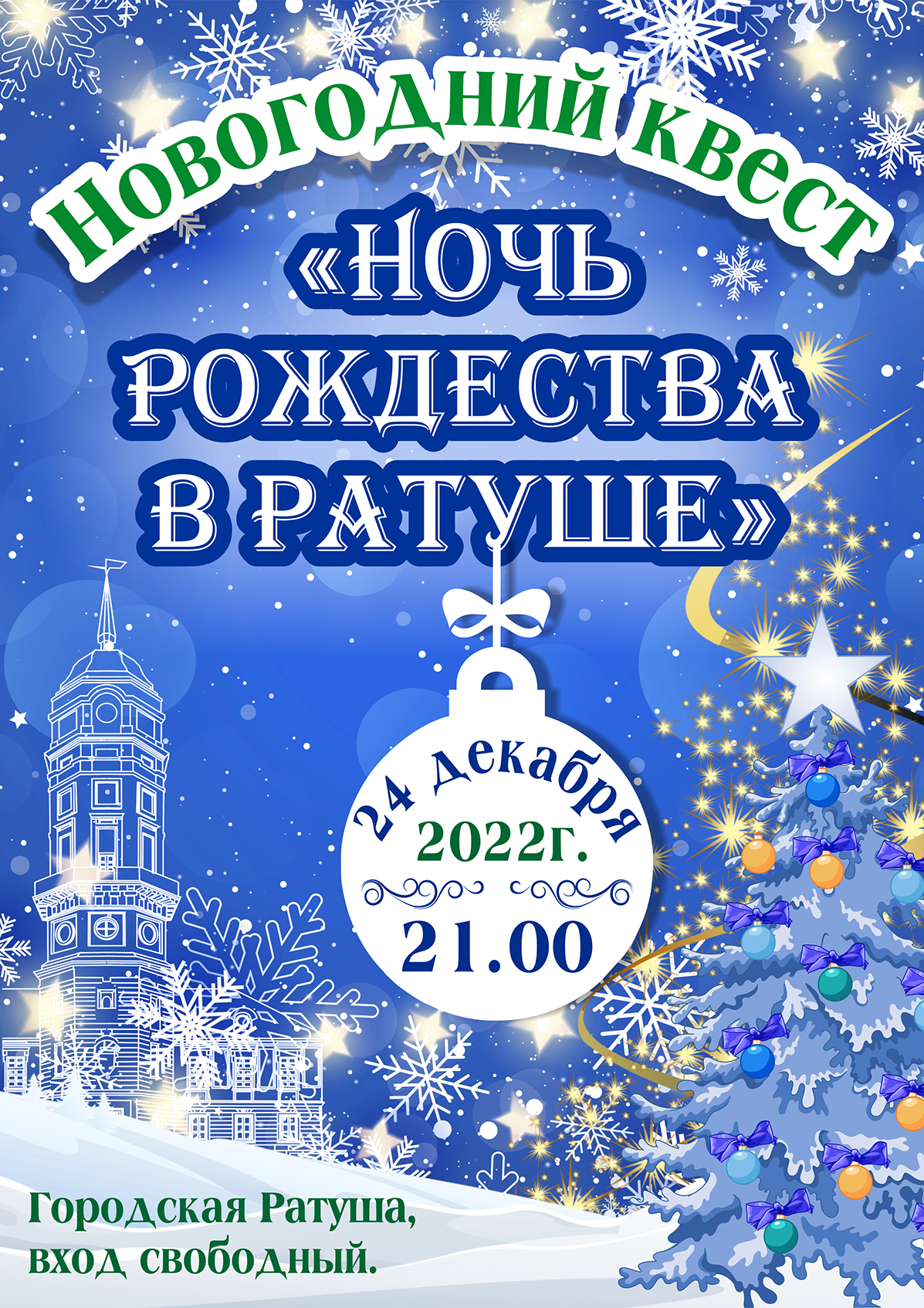Новогодний квест пройдет 24 декабря по адресу: ул. Ленинская, 1а (городская Ратуша). Начало в 21.00. Вход свободный.