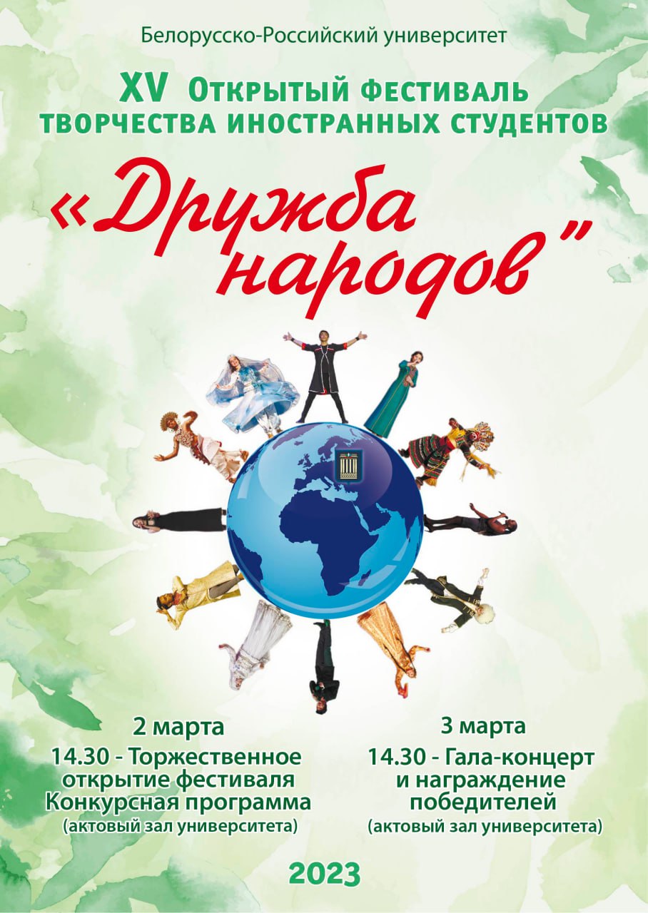 В Белорусско-Российском университете 2-3 марта пройдет ХV фестиваль творчества «Дружба народов». Иностранные студенты из 9 вузов Беларуси будут состязаться в различных номинациях — вокально-хоровое и инструментальное творчество, хореографическое и театральное искусство.