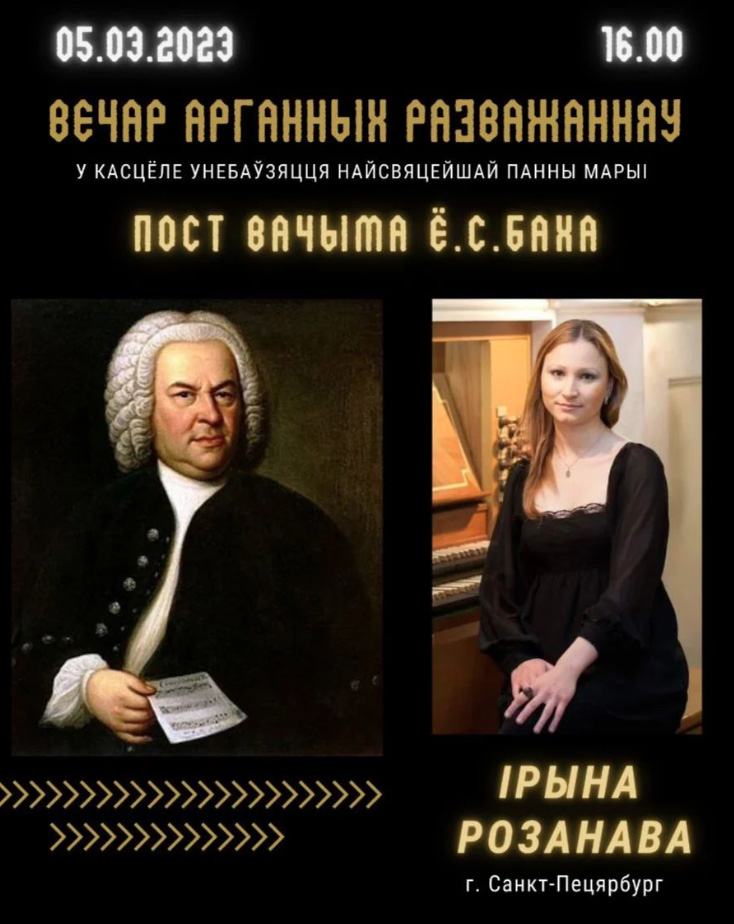 Могилевчан 5 марта приглашают на вечер органной музыки. Программу «Пост глазами И.С. Баха» в костеле Успения Девы Марии и святого Станислава (ул. Комсомольская, 4) представит музыкант из Санкт-Петербурга Ирина Розанова.