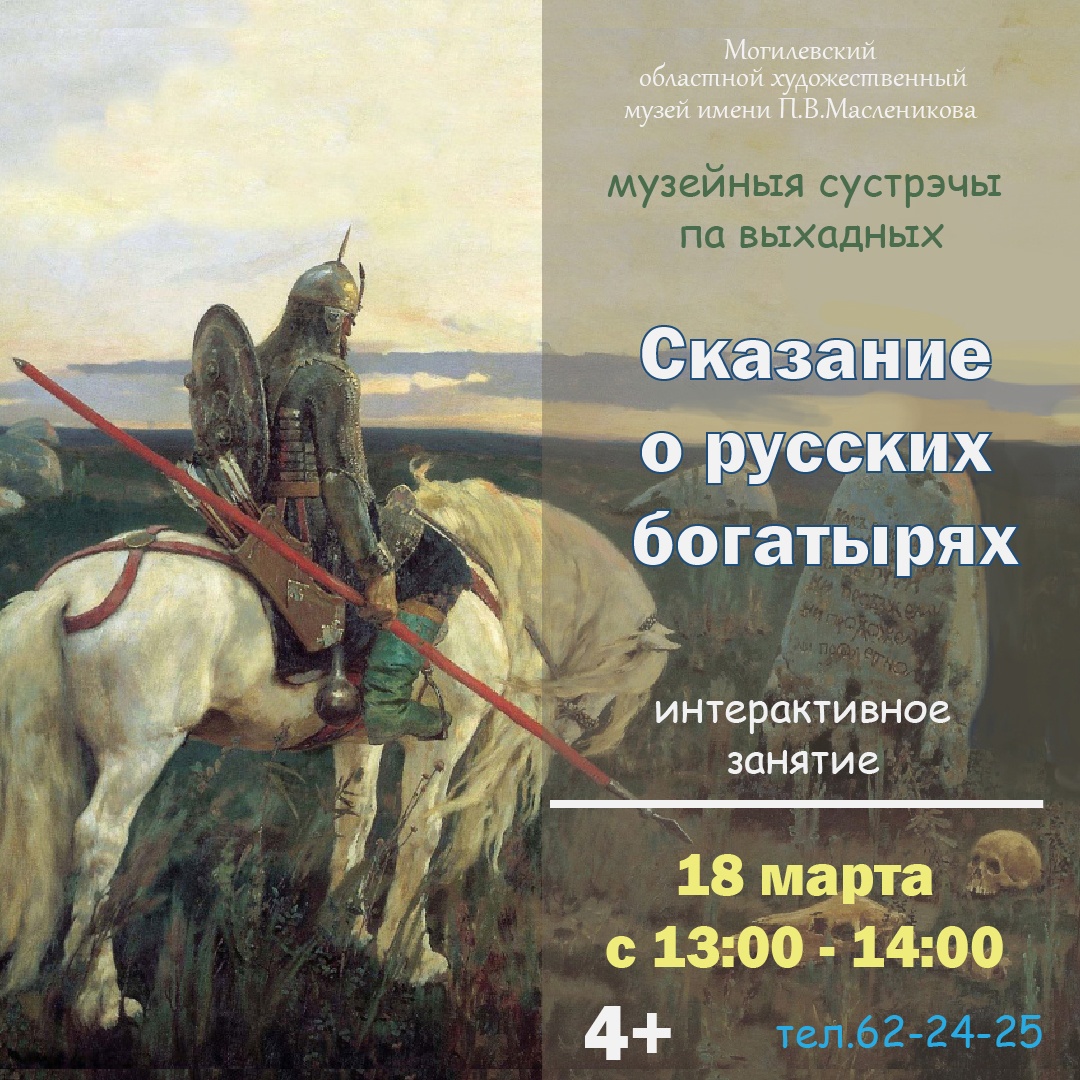 В субботу, 18 марта, в учреждении культуры состоится интерактивное занятие «Сказание о русских богатырях». Как рассказали в музее, воспевая богатырей и защитников Родины, былины призывали на подвиг во славу Отечества, поднимали в тяжелые годы испытаний дух народа, воспитывали в юношах любовь и уважение к родной земле. Пример непобедимых богатырей во все времена вселял в людей мужество, укреплял чувство долга и чести. Во время интерактивного занятия его участники не только услышат увлекательный рассказ, но и попробуют себя в обличье древних воинов.