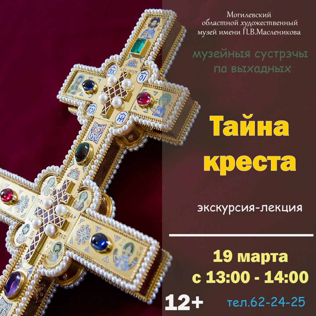 В воскресенье, 19 марта, в музее состоится экскурсия-лекция по экспозиции «Тайна креста». Могилевчанам расскажут, почему орудие казни — крест — стал величайшей христианской святыней, познакомят с историей Креста Евфросинии Полоцкой, созданного в ХII в. и таинственно исчезнувшего из бронированной комнаты-сейфа музея.