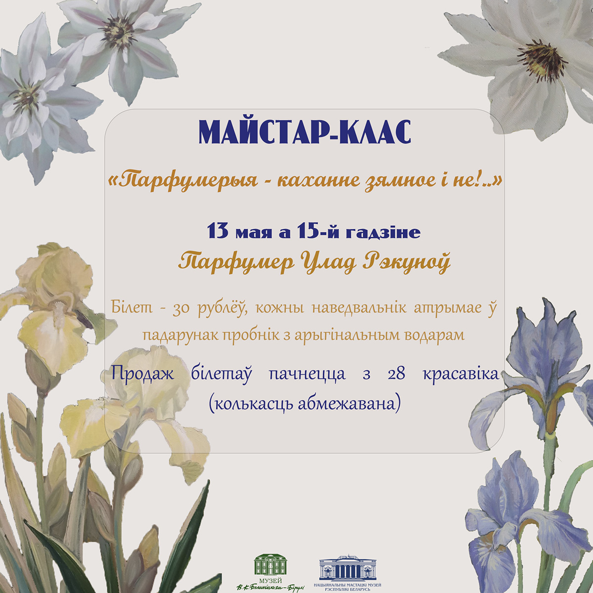Мастер-класс «Парфюмерия — любовь земная и нет!..» состоится 13 мая в музее В.К. Бялыницкого-Бирули Могилева, сообщили в учреждении культуры.